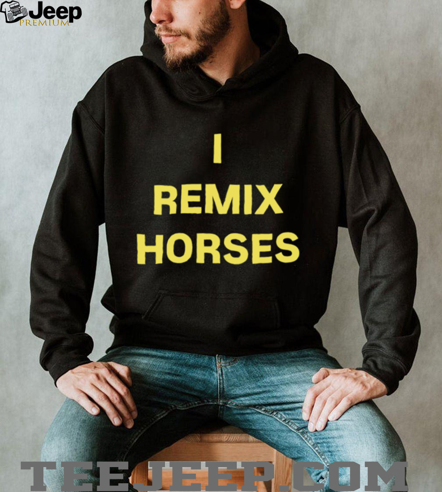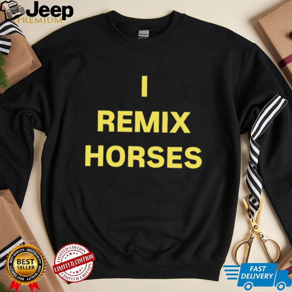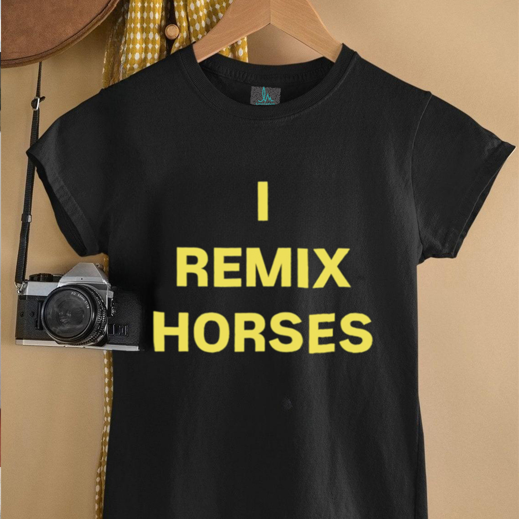 Beyond the immediate humor, the phrase “I Remix Horses” could also be interpreted as a metaphor for creative thinking and the ability to take something familiar and transform it into something new and unexpected. Just as a music producer remixes existing sounds to create a new track, the idea of remixing horses suggests a radical reimagining of something well-known. Wearing this shirt could therefore represent a mindset that embraces innovation, unconventional ideas, and the power of creative transformation in any field, not just music.