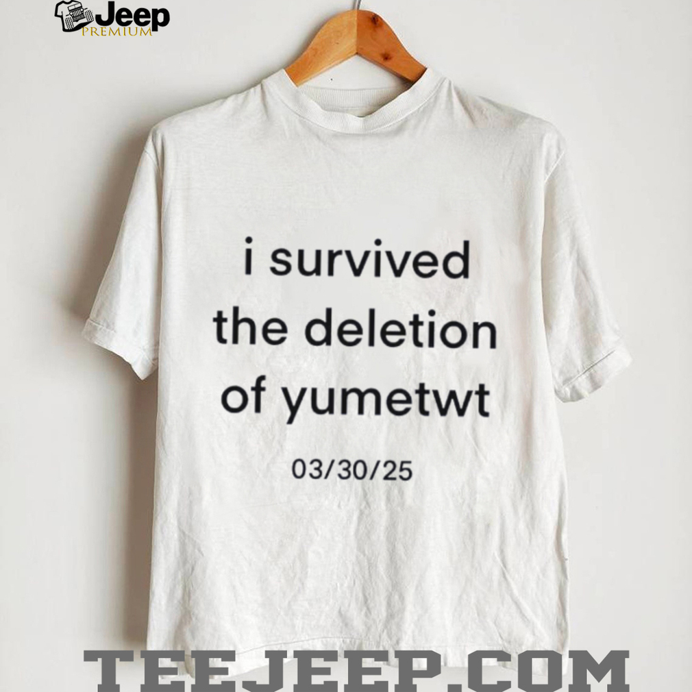 This shirt represents a strong connection to a specific online community and the shared experiences of its members. It’s a way for individuals to express their belonging and celebrate their resilience in the face of digital disruption. The humor of the phrase highlights the often-absurd and dramatic nature of online interactions, while also acknowledging the genuine bonds formed within these spaces. This shirt is a badge of honor for those who were part of “yumetwt” and navigated the hypothetical deletion.
