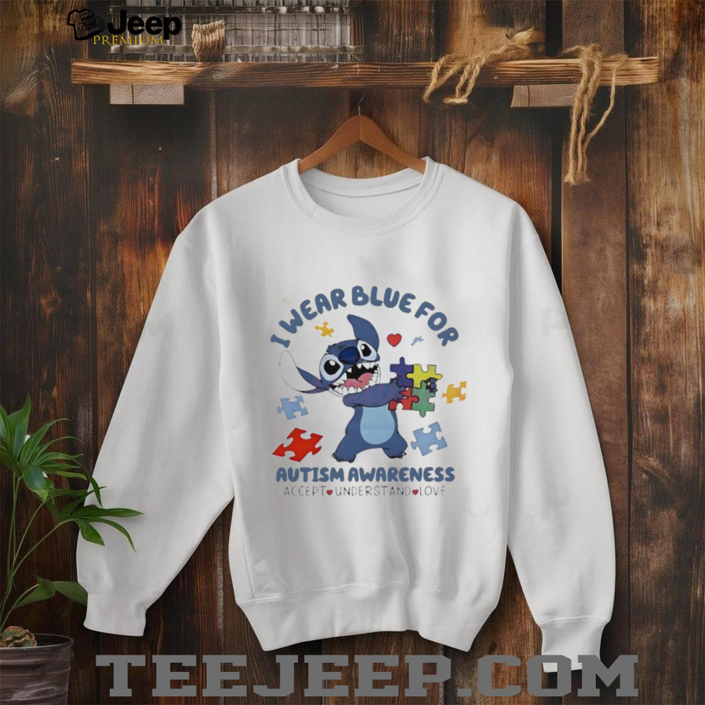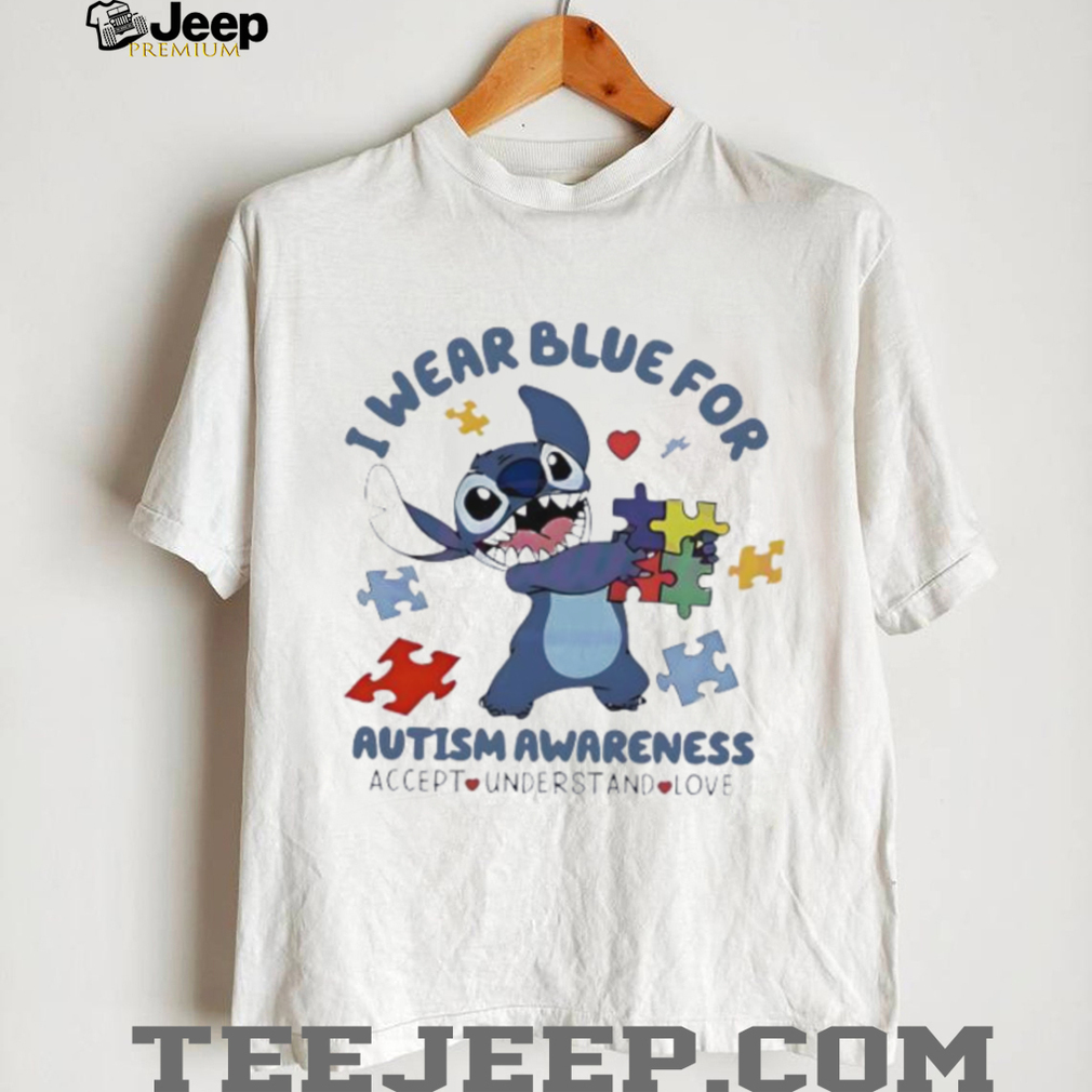 The “I Wear For Blue Autism Awareness Accept Understand Love Stitch shirt” is a piece of apparel designed to promote autism awareness and acceptance. The phrase “I Wear For Blue” directly references the color blue, which is a widely recognized symbol of autism awareness. The inclusion of “Accept Understand Love” emphasizes the importance of compassion and inclusivity towards individuals with autism. The “Stitch” element could refer to a specific design element, perhaps a stitched graphic or a reference to a character or symbol associated with the autism community. This shirt serves as a visual statement of support and advocacy.
