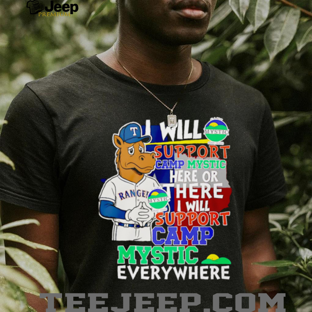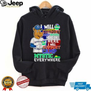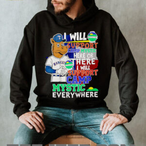 The “I will support Camp Mystic here or there I will support Camp Mystic everywhere Texas Rangers Captain mascot shirt” is a unique and heartfelt declaration of loyalty, intertwining deep personal affection for a beloved institution with passionate sports fandom. This shirt expresses unwavering support for **Camp Mystic** with a playful, Dr. Seuss-esque rhyme, all while featuring the iconic **Texas Rangers Captain mascot**. It’s a perfect blend for those whose hearts belong to both a cherished summer camp and their favorite baseball team.