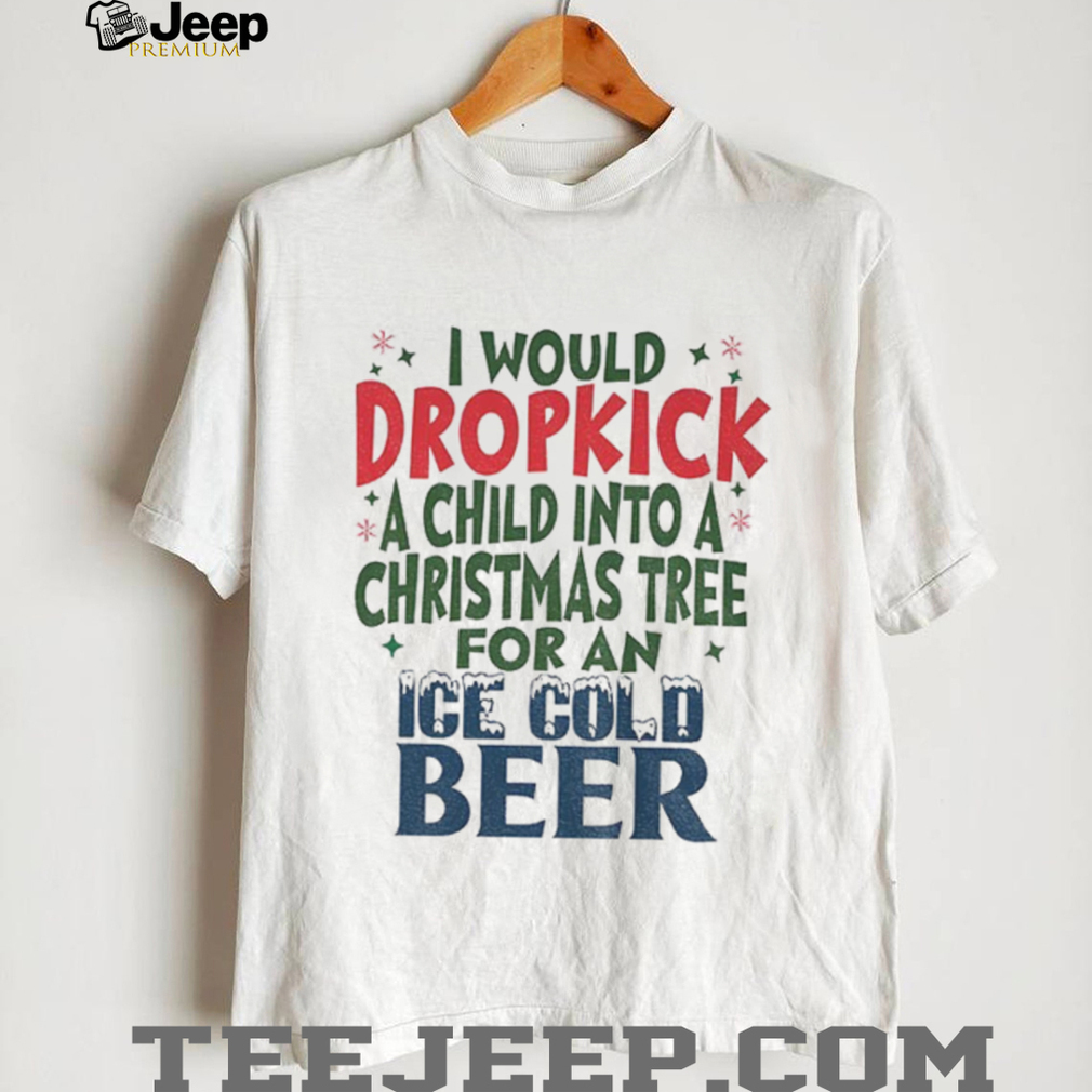 Warning: This shirt is not for the faint of heart! This “I would dropkick a child into a Christmas tree for an Ice cold beer Christmas shirt” makes a bold statement. This shirt is for you.