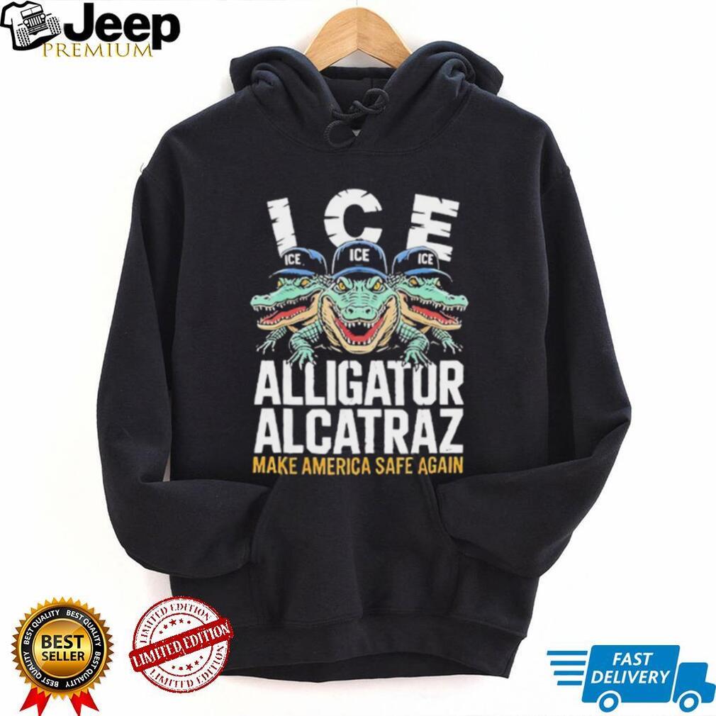 **ICE**, or U.S. Immigration and Customs Enforcement, is a prominent entity in the realm of American law enforcement, responsible for enforcing immigration laws and investigating transnational crime. The phrase “**Make America Safe Again**” is a powerful semantic keyword, widely recognized as a political slogan emphasizing national security and a return to perceived traditional values. When combined, these elements create a clear and direct message regarding border control and national safety. This shirt appeals to those who believe that strong, uncompromising measures are necessary to secure national borders and maintain public order. What specific policies or initiatives, associated with ICE and the “Make America Safe Again” platform, are being referenced or supported by the symbolic imagery of “Alligator Alcatraz” on this shirt?