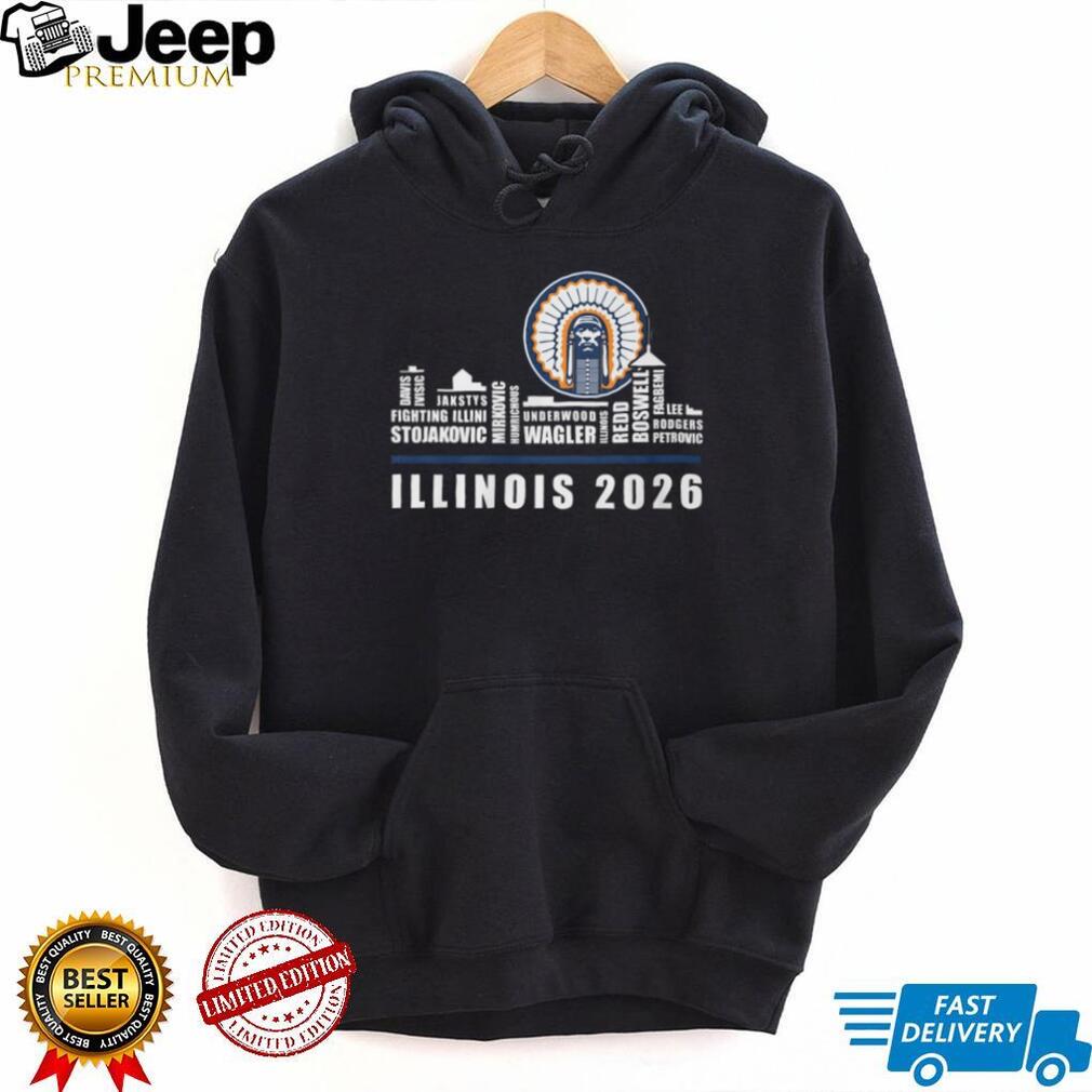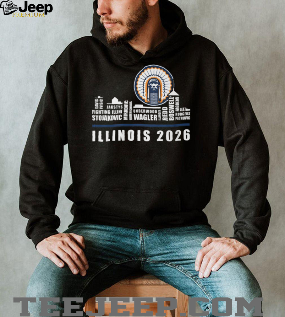 ()Illinois Fighting Illini 2026 Basketball Team Roster Skyline Signature T Shirt, Treat yourself or make a great gift for your loved ones