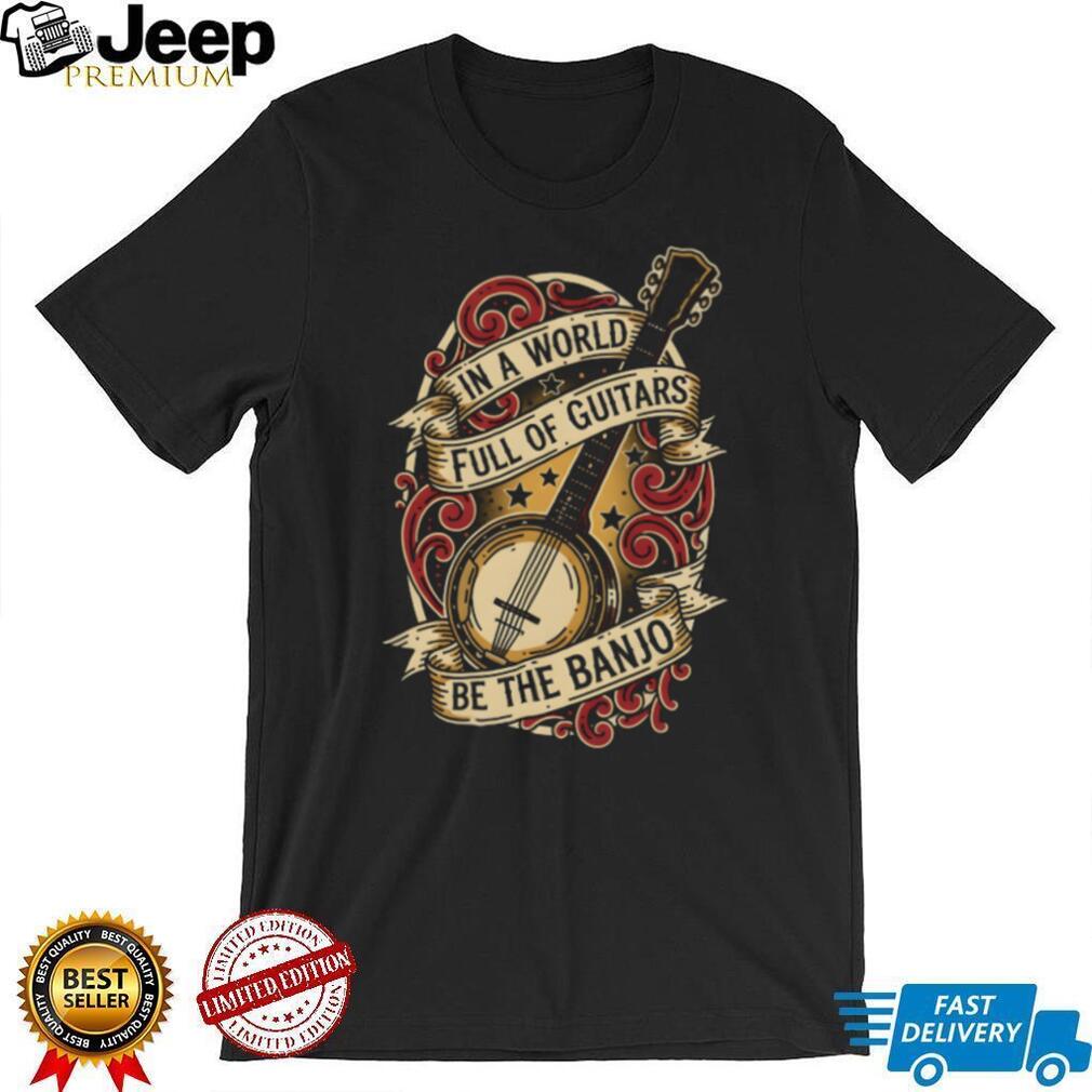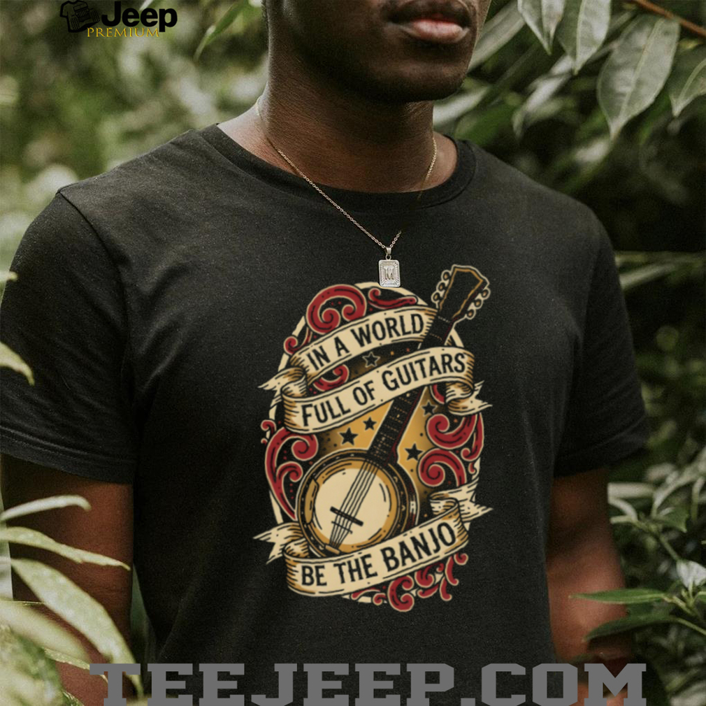 ()In A World Full Of Guitars Be The Banjo Vintage Ribbon Musical Instrument T Shirt, Treat yourself or make a great gift for your loved ones