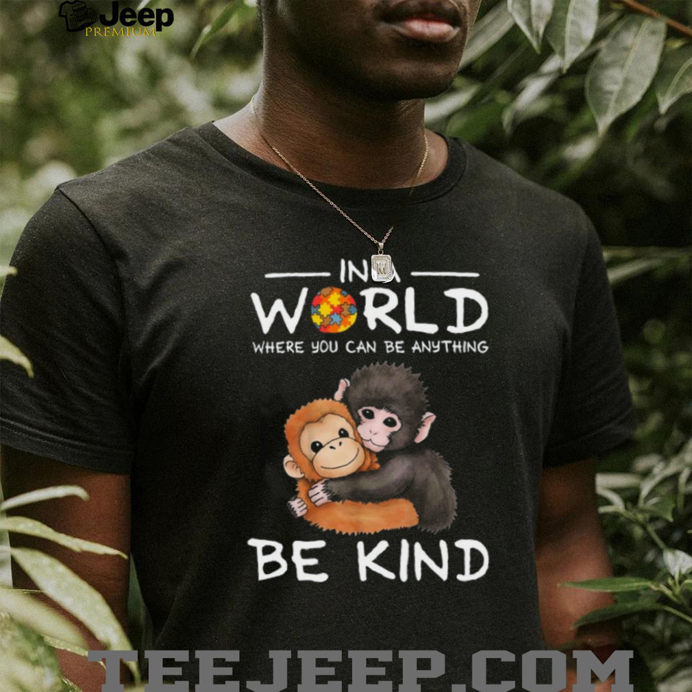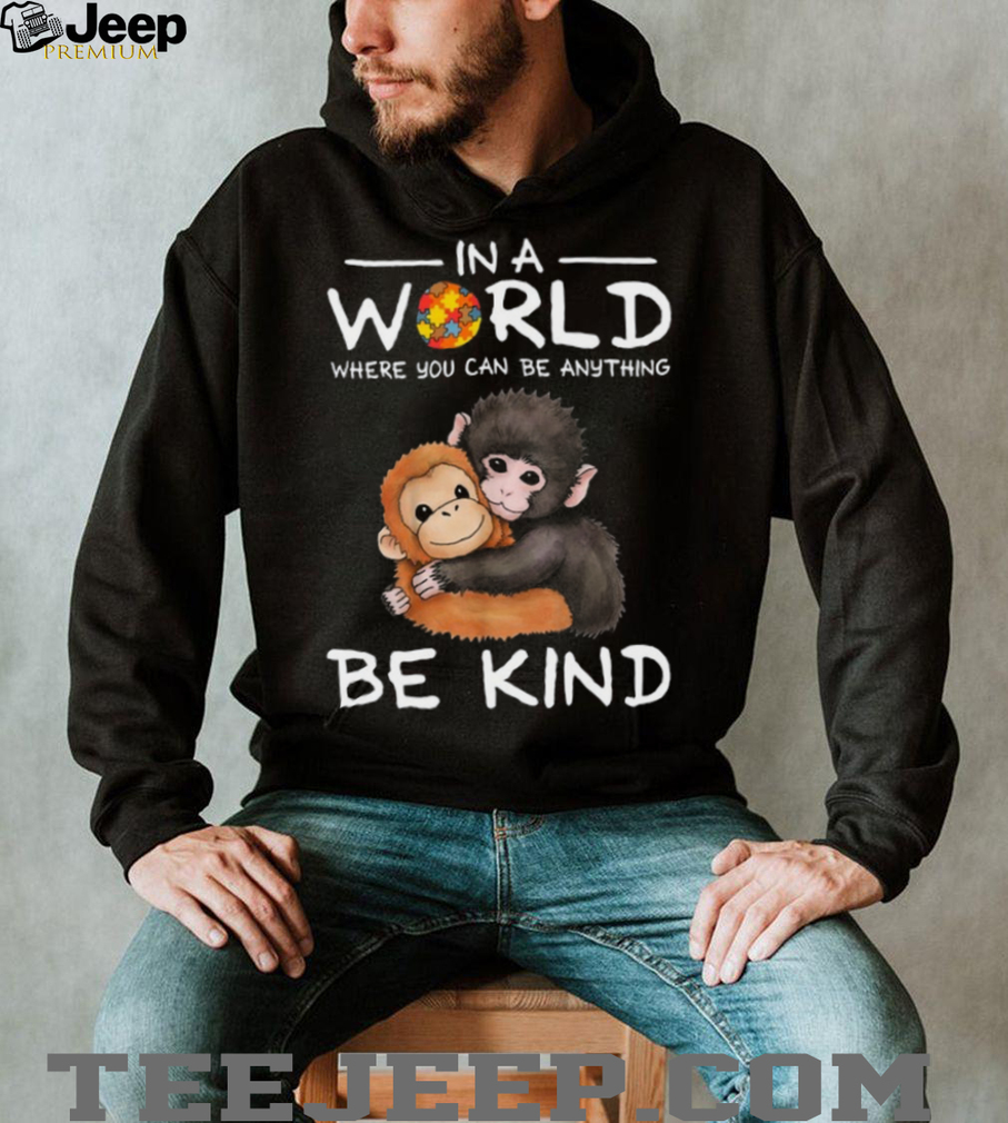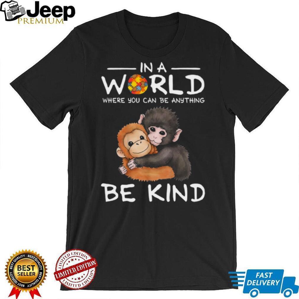 (In A World Where You Can Be Anything Be Kind Autism Awareness Monkeys T Shirt)