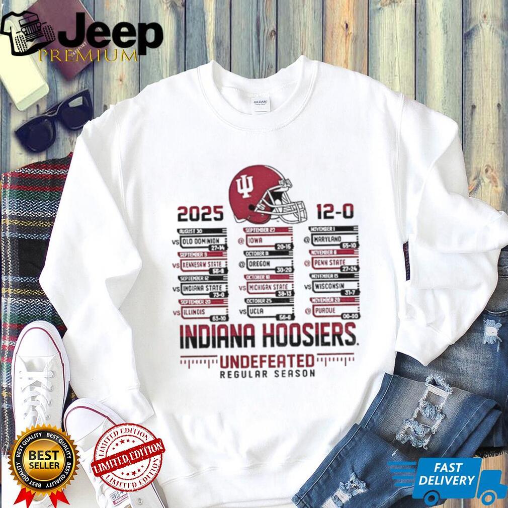 This Indiana Hoosiers helmet Big Ten Football Championship 2025 Undefeated Regular Season shirt is tailored for the ultimate Indiana Hoosiers fan, the proud alum, or anyone who cherishes college football milestones. It’s the ideal attire for watching games, attending victory parades, or as a thoughtful gift for a fellow fan who bleeds crimson and cream. Celebrate the historic 2025 season and share the excitement with this standout piece of Hoosiers apparel. It’s perfect for commemorating a season that will be talked about for years to come.
