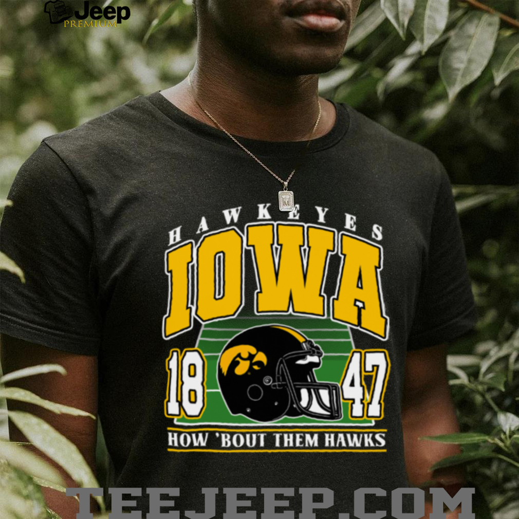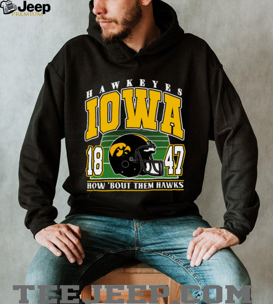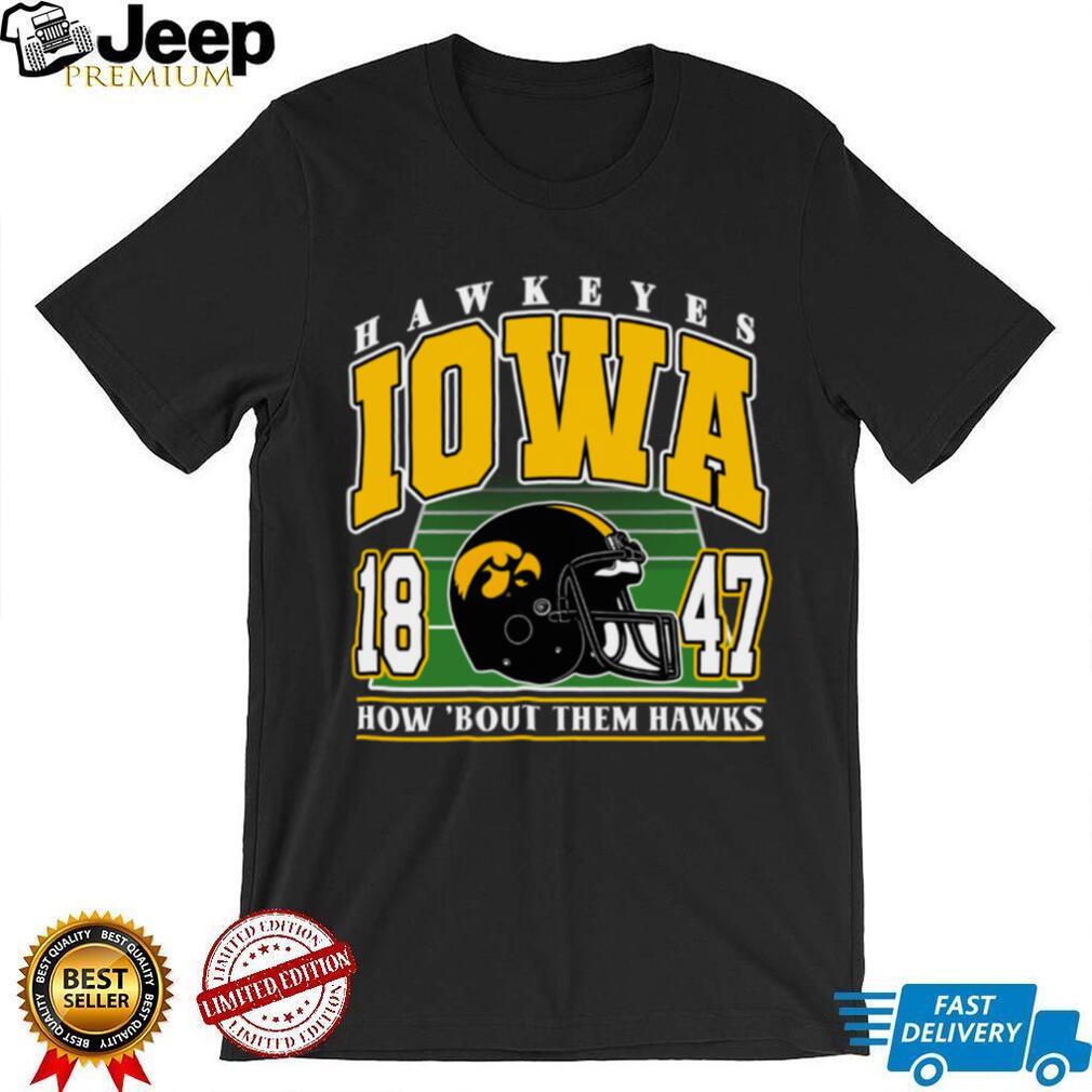 Show your Hawkeye pride with this Iowa Hawkeyes How ‘Bout Them Hawks Football Helmet T Shirt! Perfect for game days in Kinnick Stadium or representing the Hawkeyes wherever you go. This tee is a must-have for any die-hard Iowa fan who wants to show their support for the team. This shirt is the perfect way to cheer on the Hawkeyes to victory!