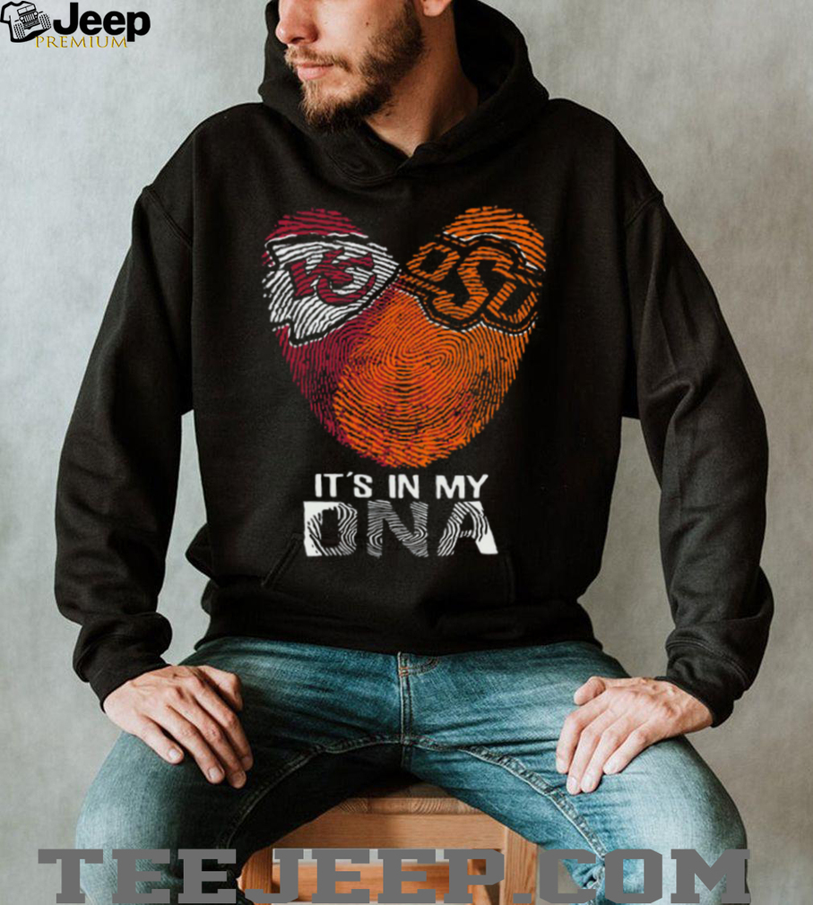 It’s in My DNA Kansas City Chiefs & Oklahoma State Cowboys Heart T Shirt