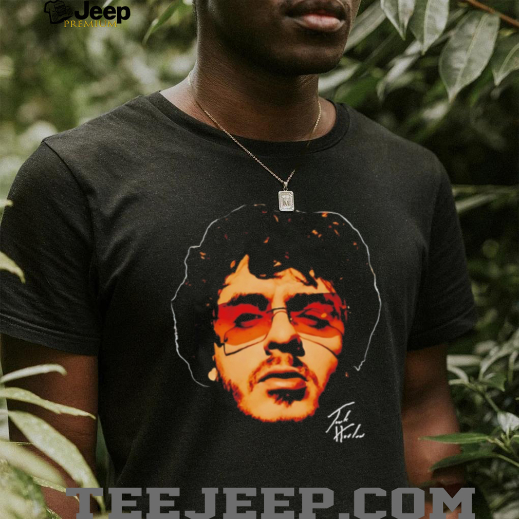 A stylish illustrated portrait tee of rapper Jack Harlow, complete with signature graphic design. A great gift for Jack Harlow fans who want to wear their favorite artist’s flair.