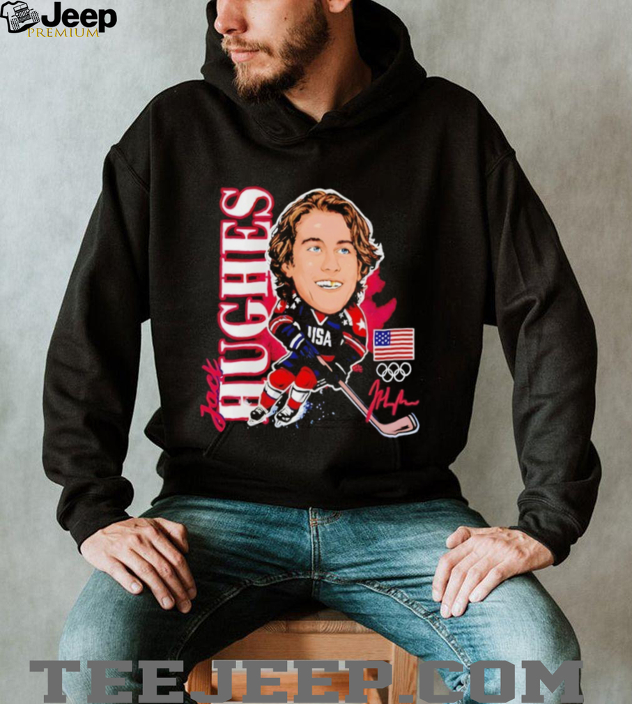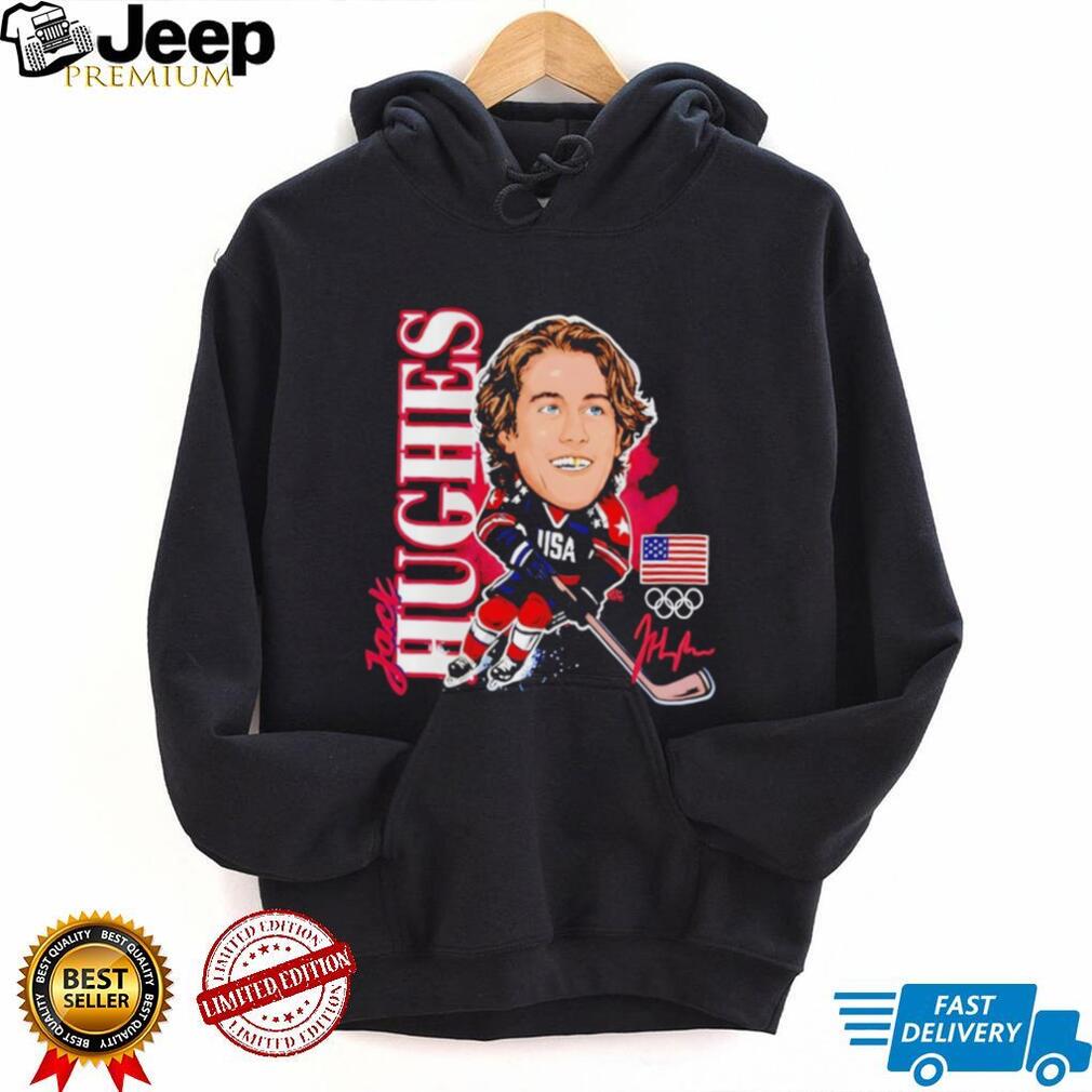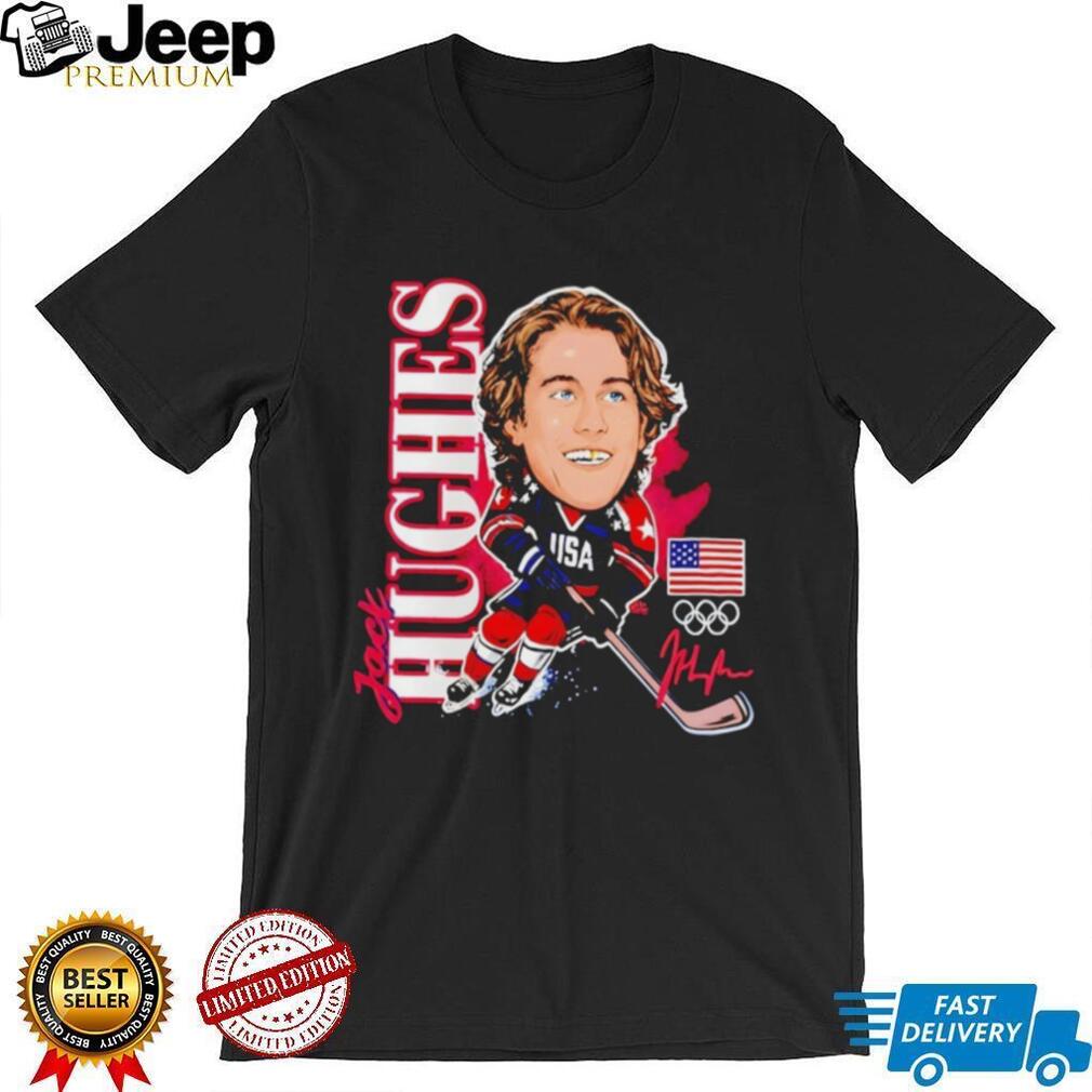 ()Jack Hughes USA Olympic Hockey Caricature Signature T Shirt, Treat yourself or make a great gift for your loved ones