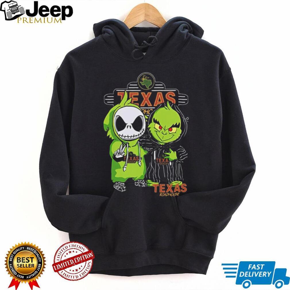 Jack Skellington and The Grinch Texas Roadhouse Funny Christmas Halloween Mashup T Shirt