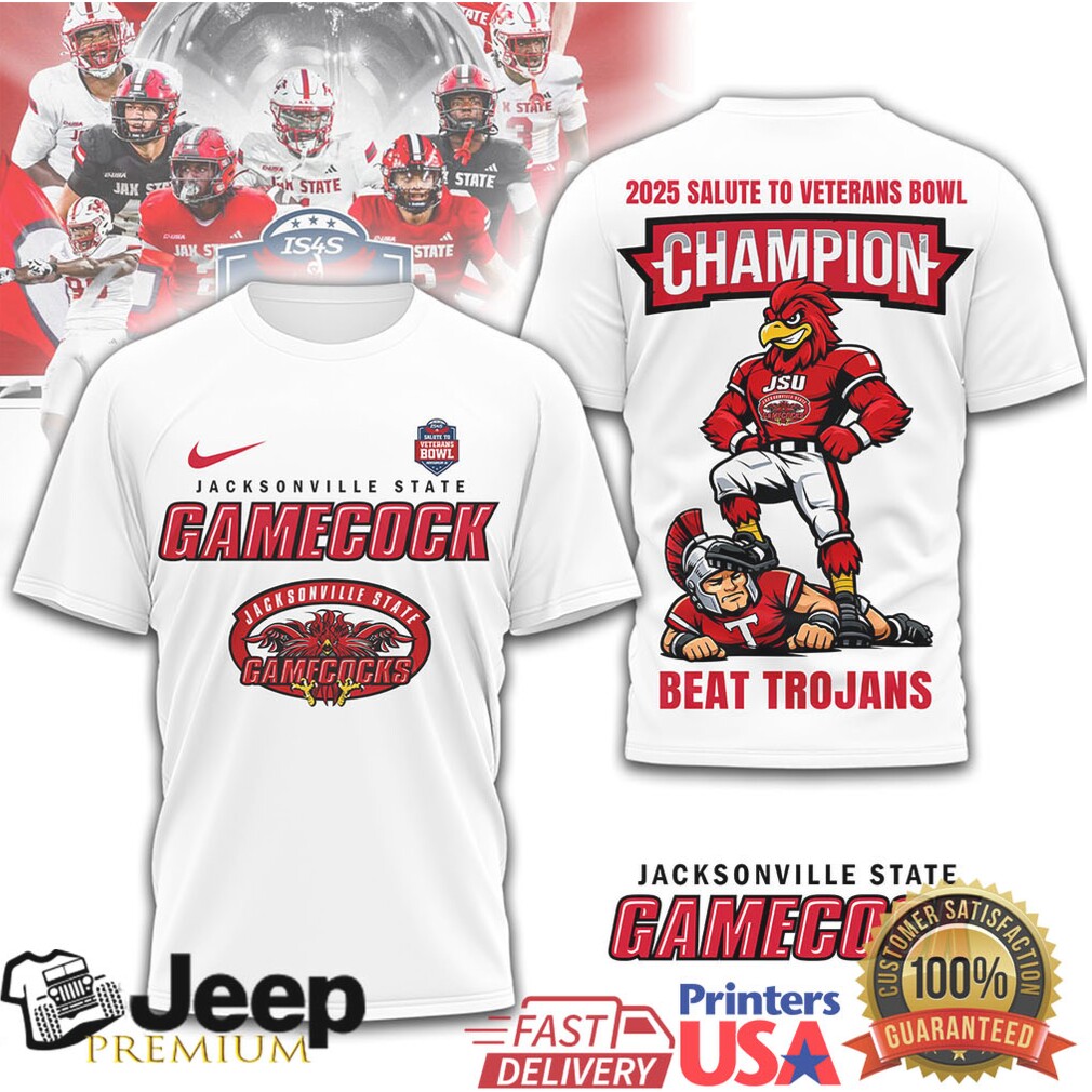 👕 About Jacksonville State Gamecocks 2025 Salute to Veterans Bowl Champions T Shirts
