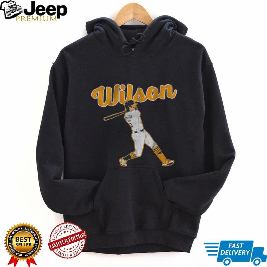 Celebrate the promising talent of a burgeoning star with the “Jacob Wilson Oakland Athletics MLB Baseball Slugger Swing shirt“! This dynamic T-shirt features “Jacob Wilson,” a standout player for the “Oakland Athletics,” capturing the essence of his powerful “slugger swing” in “MLB Baseball.” It’s more than just fan apparel; it’s a recognition of a player poised to make a significant impact in the league, perfect for A’s supporters and admirers of emerging baseball talent.