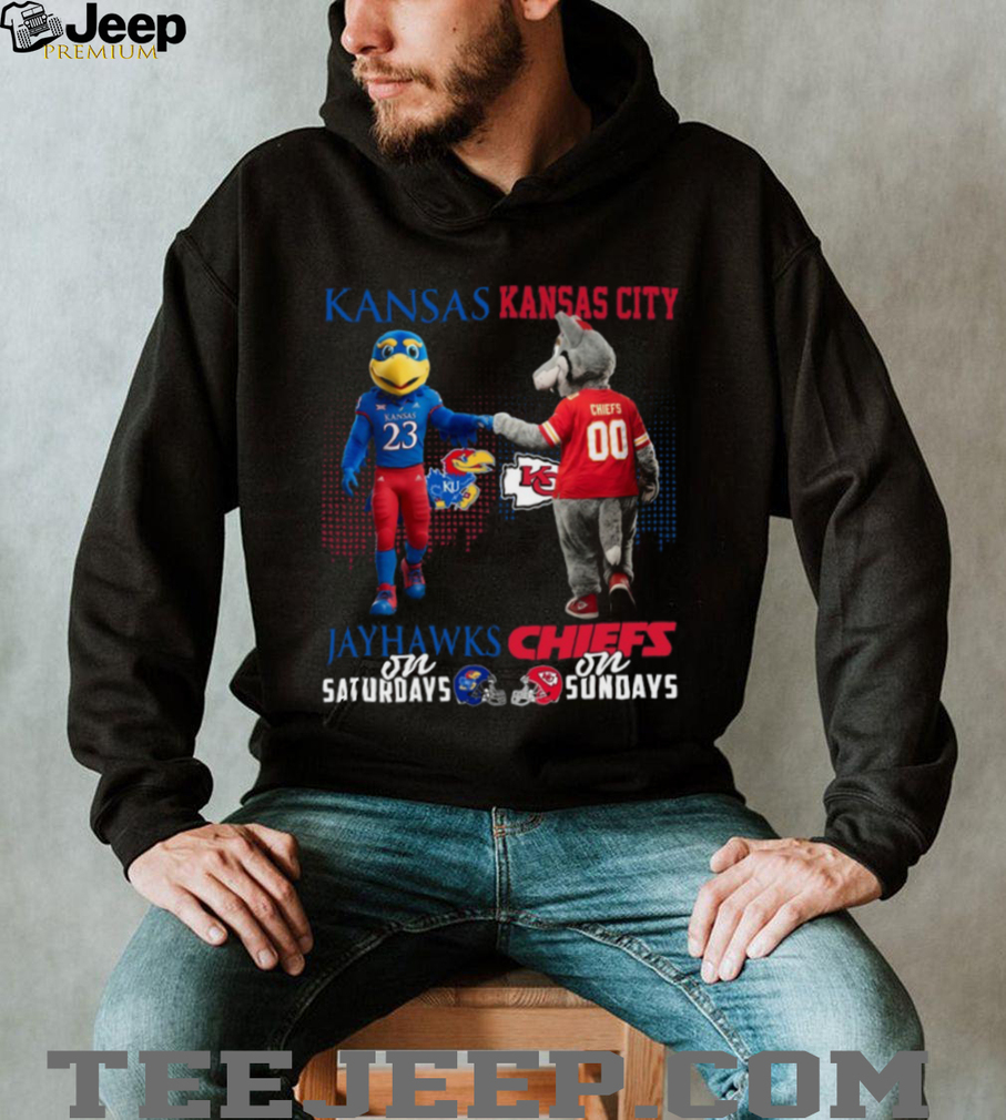 Show your Kansas City pride every weekend! This “Jayhawks on Saturdays, Chiefs on Sundays” T-shirt is the ultimate way to represent your city’s teams.
