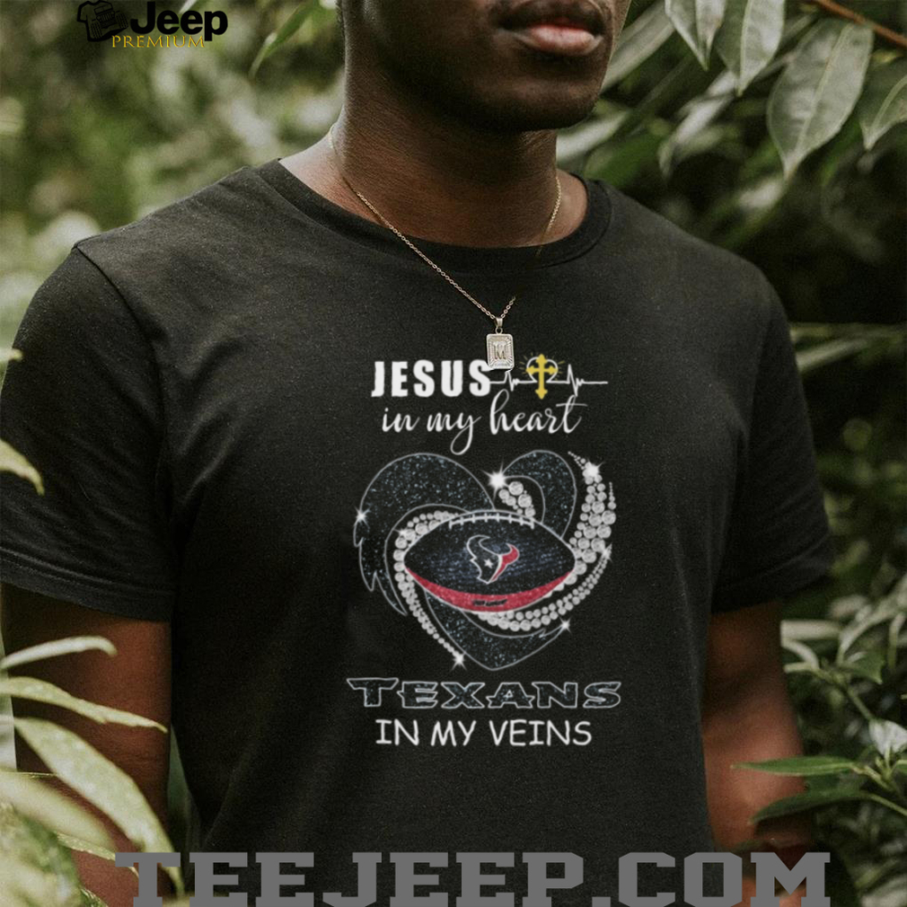 ()Jesus In My Heart Texans In My Veins Houston Football Faith Glitter Heart T Shirt, Treat yourself or make a great gift for your loved ones