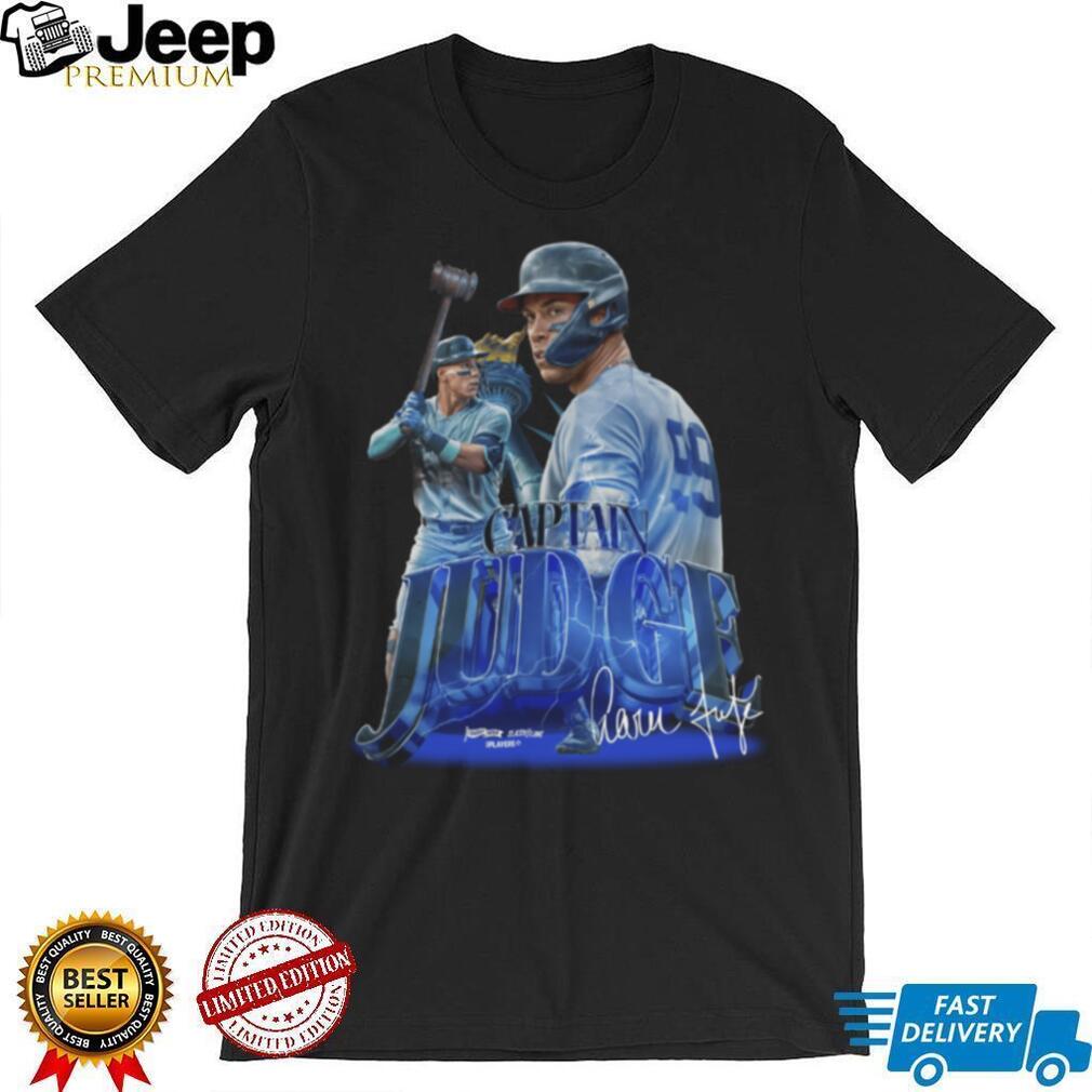 Show your support for the Captain of the New York Yankees with this exclusive Aaron Judge T-Shirt! Brought to you by Jomboy Media, this tee celebrates Judge’s leadership and talent. It’s the perfect way to display your Yankees pride and honor one of baseball’s biggest stars. A must-have for any true Yankees fan!