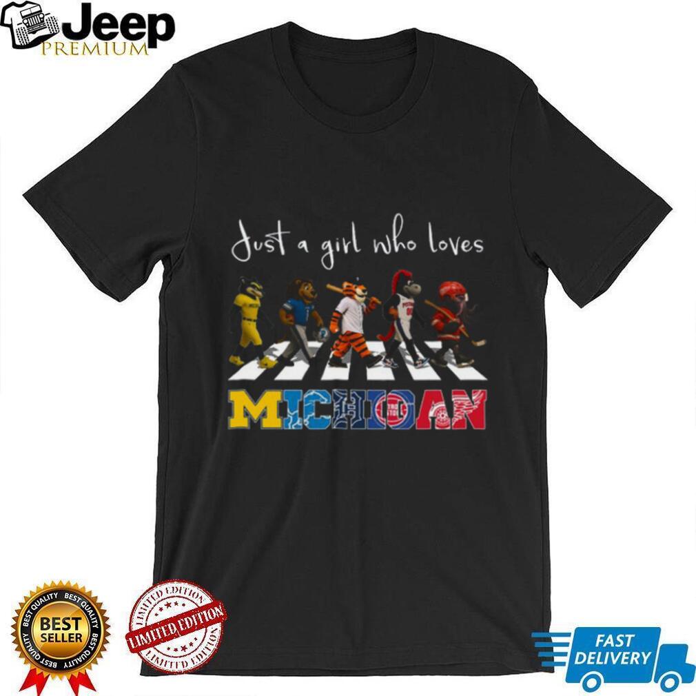 ()Just a Girl Who Loves Michigan Sports Teams Mascot Abbey Road T Shirt, Sport Tumbler and Funny Tumbler
