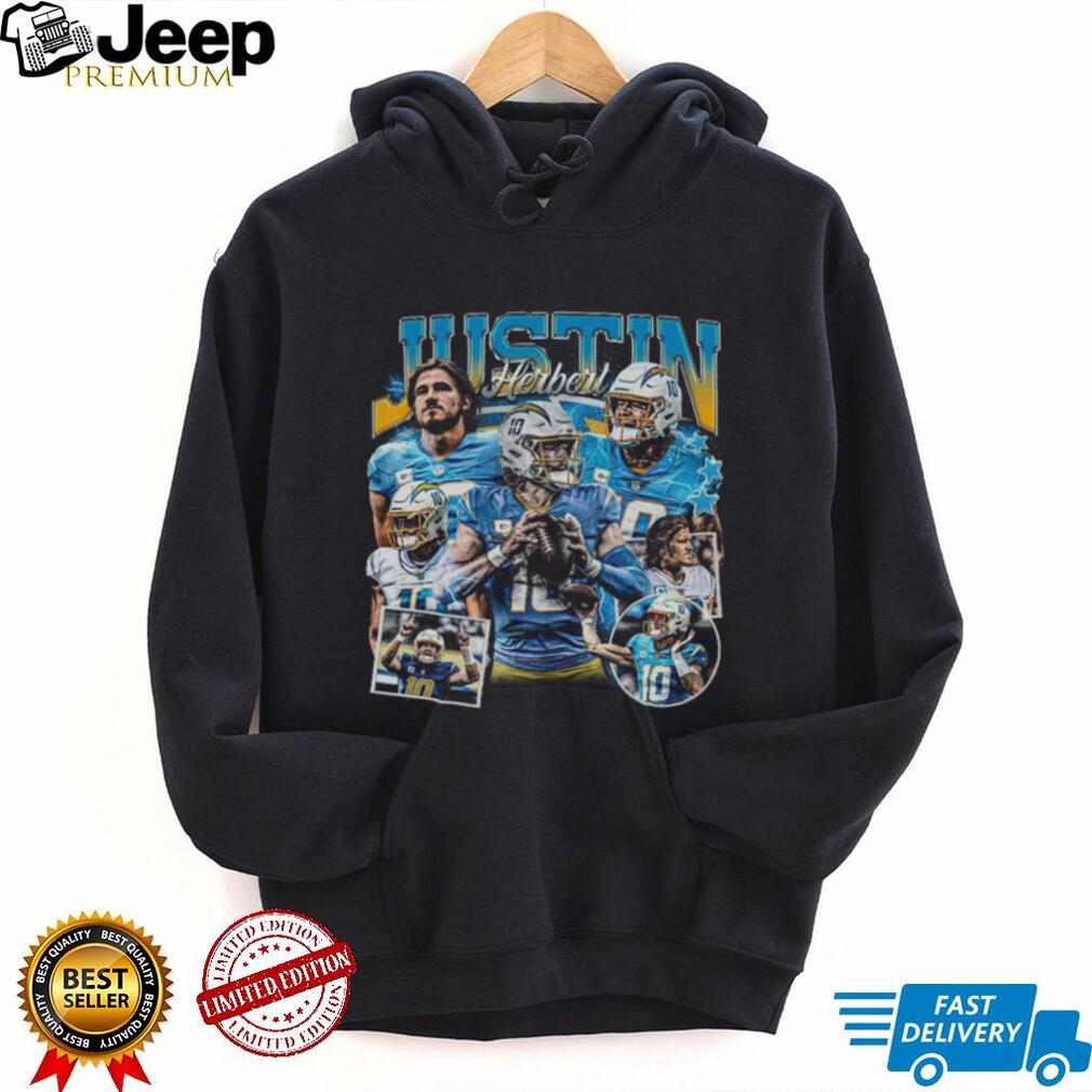 This Justin Herbert Shirt is the ultimate fan gear for devoted Chargers supporters and admirers of Justin Herbert’s incredible talent. Its 90s bootleg-inspired design makes it a fantastic gift for anyone who appreciates vintage sports aesthetics or is looking for unique football fan apparel. Ideal for wearing to games, sports bars, or any casual gathering, it’s a statement piece that perfectly blends fan loyalty with retro style. The second image demonstrates the shirt’s universal appeal and comfortable fit, making it a go-to for both men and women who want to showcase their football pride with a distinctive edge.