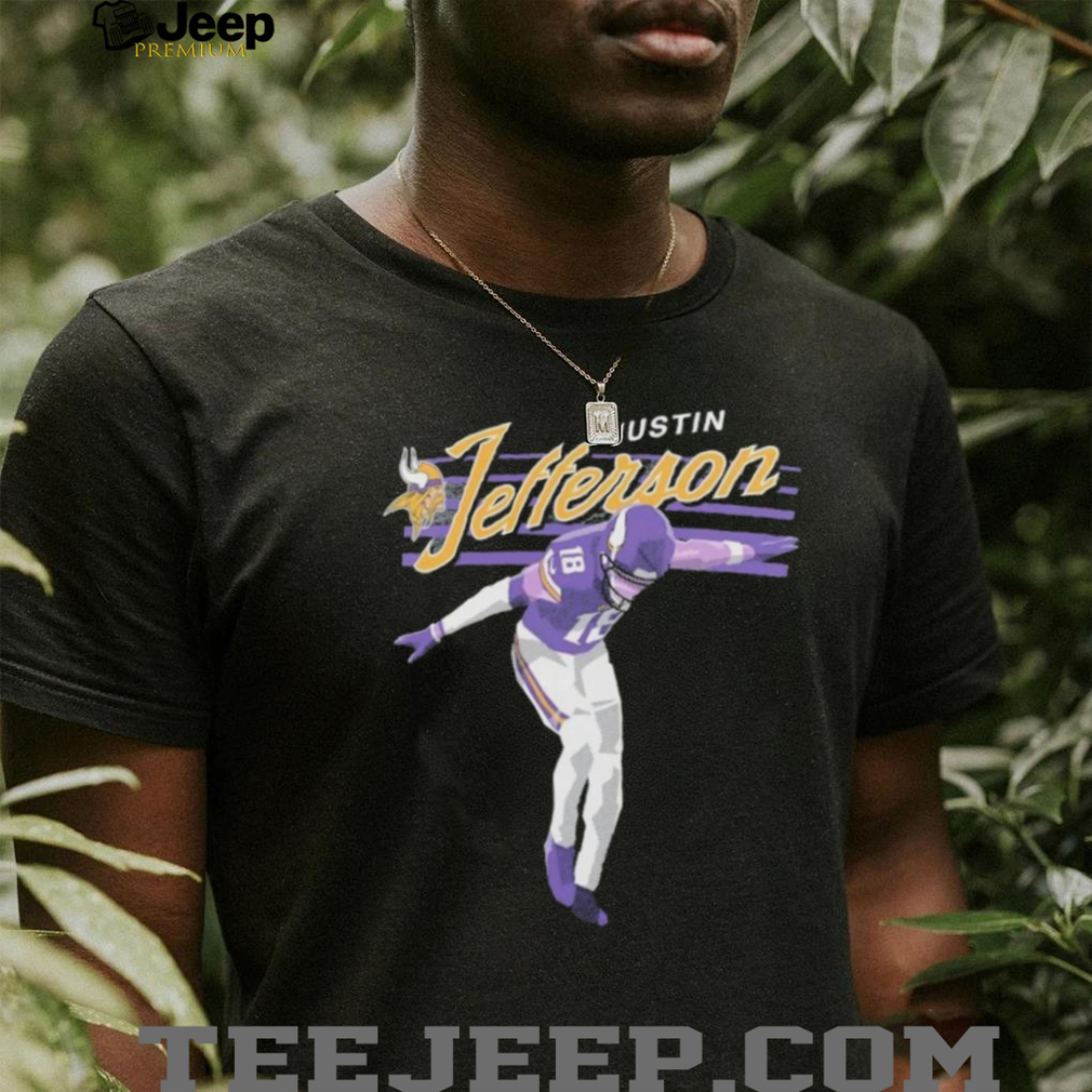 This Justin Jefferson shirt is more than just fan apparel; it’s a statement. The bold graphic captures the excitement and skill that Jefferson brings to the game. Made from a comfortable cotton blend, this shirt is perfect for game day or everyday wear. Available in various sizes.