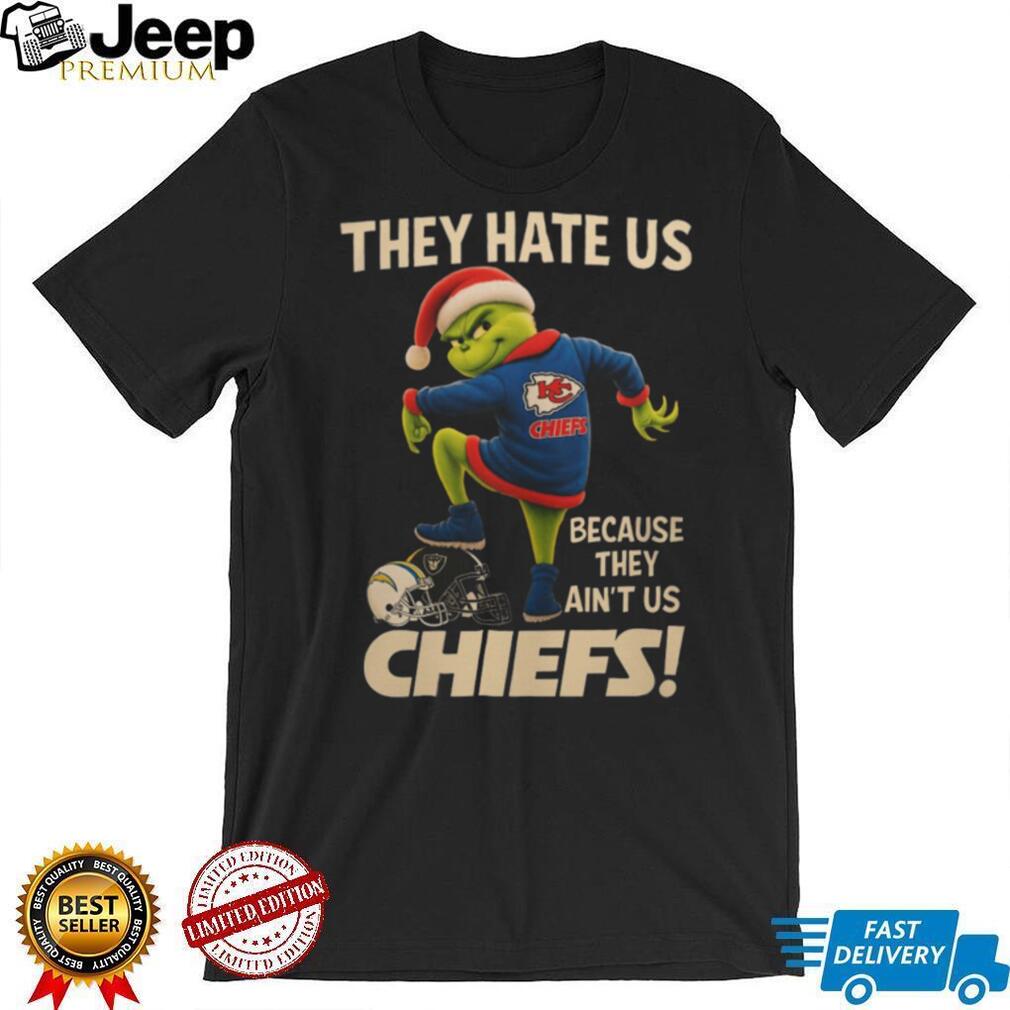 This isn’t just any Christmas shirt; it’s a bold statement for every die-hard Kansas City Chiefs fan with a sense of humor! Imagine showing up to your holiday party or game day gathering sporting the Grinch, perfectly capturing that “They Hate Us Because They Ain’t Us” Chiefs spirit. This unique tee blends festive cheer with undeniable team pride, making it the ultimate conversation starter and a must-have for the holiday season.