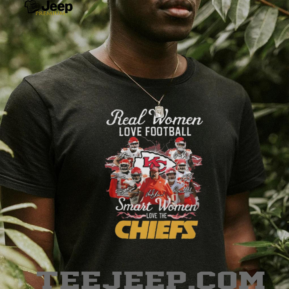 With each Kansas City Chiefs Real Women Love Football Smart Women Love The Chiefs Signatures T shirt, you are contributing to creating a green tree. To keep your Kansas City Chiefs T-shirt in prime condition, wash it inside out in cold water and tumble dry on low. Avoid direct ironing on the design.