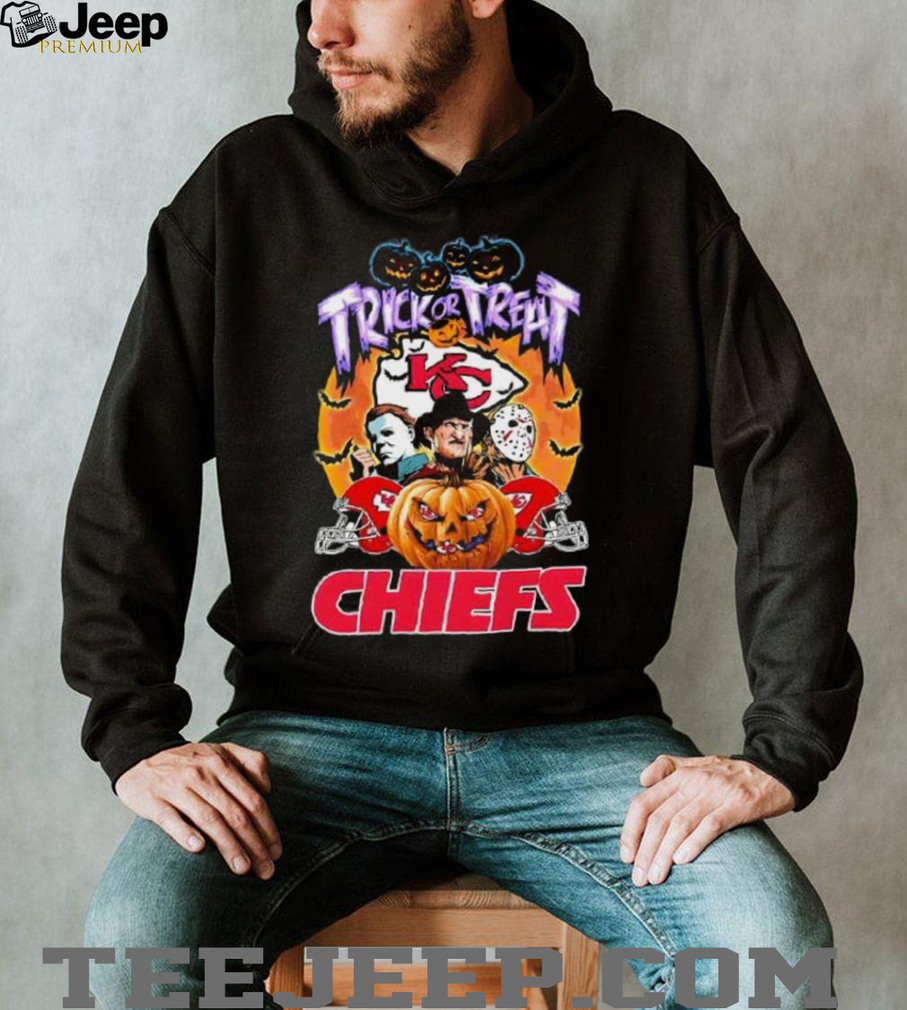 Get ready to scream for the Chiefs this Halloween with this Kansas City Chiefs x Horror Movies Trick or Treat shirt! Combining your love for football and spooky season, this tee is the perfect way to celebrate Halloween in Kansas City style.