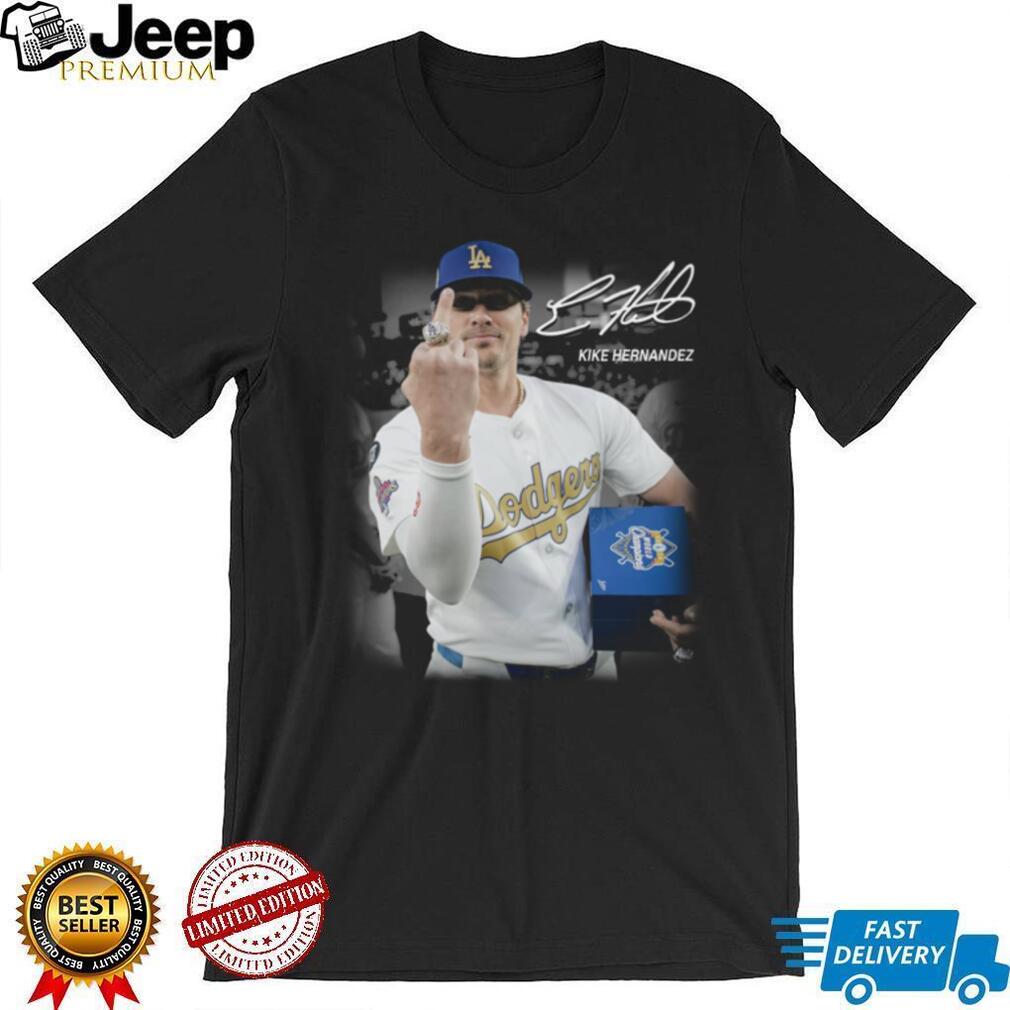 This isn’t just any Kiké Hernández shirt. It’s designed for comfort and style, perfect for game days or just showcasing your team pride. Made from a soft, durable cotton blend, it feels good against your skin and holds up well to repeated wear and washing. The standout graphic, a bold tribute to Kiké Hernández, captures his iconic spirit and directness. Available in various sizes, this baseball fan tee offers a comfortable fit for every supporter. It’s an ideal piece for those who want to represent their player with a tee that’s as spirited as the game itself.