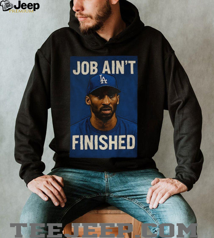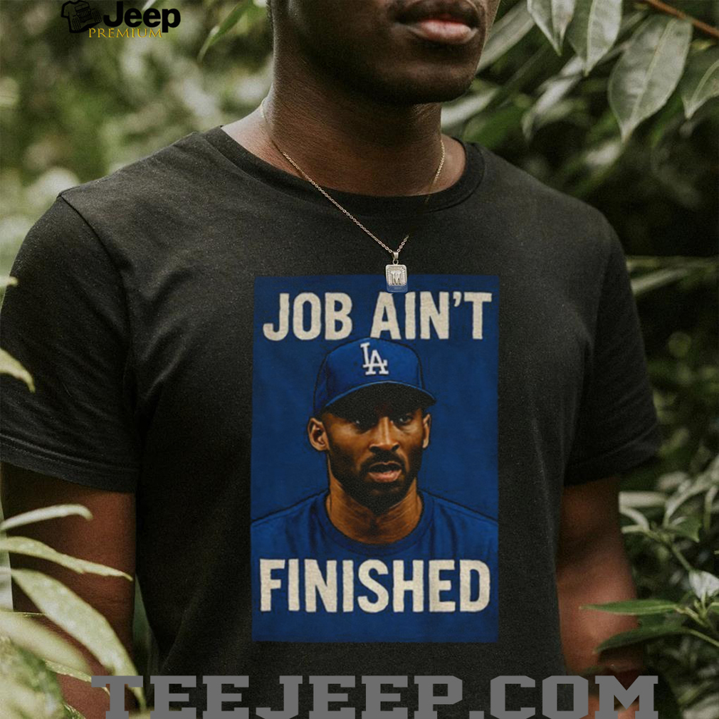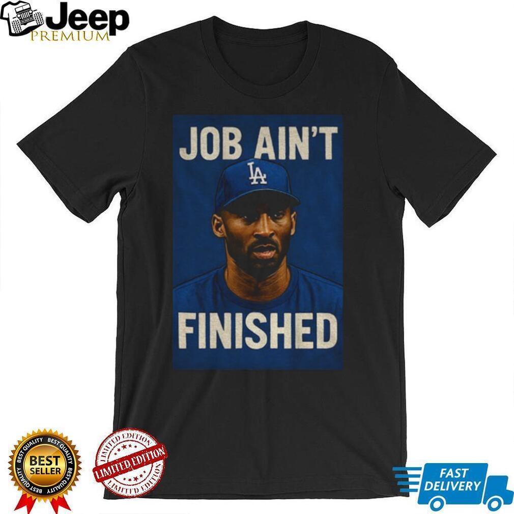 To keep your Kobe Bryant Dodgers world series job ain’t finished shirt looking its best, machine wash it cold with similar colors. Turn it inside out before washing to protect the powerful print. Tumble dry on low heat or hang dry. Do not bleach or iron directly on the design.