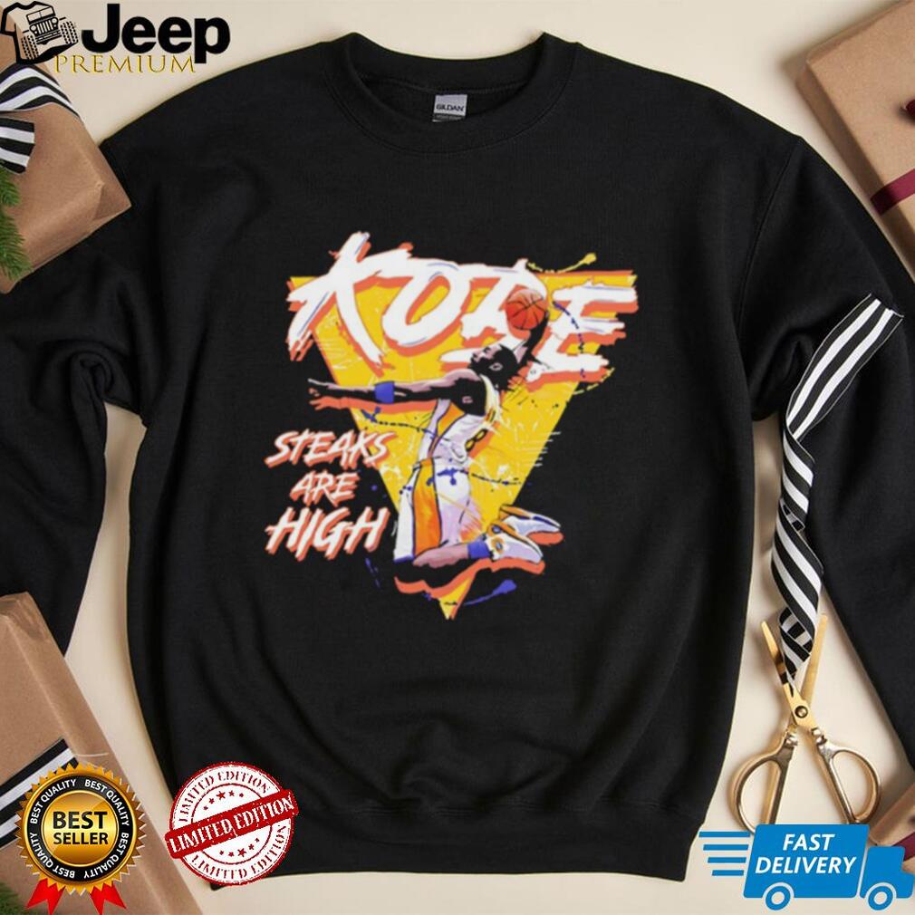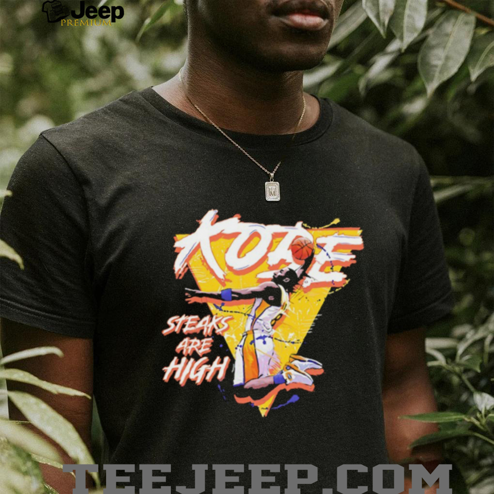 The “Kobe steaks are high Kobe Bryant shirt” is a clever and distinctive piece of fan apparel that uses a playful pun to highlight the legendary intensity and high-stakes career of **Kobe Bryant**. This shirt combines the phonetic similarity of “Kobe” (the basketball player) with “Kobe steaks” (the renowned Japanese beef) to create a memorable phrase: “**Kobe steaks are high**.” This is a humorous yet profound nod to the immense pressure and expectations that consistently surrounded Bryant throughout his illustrious career. It’s designed for fans who appreciate his competitive spirit, his relentless pursuit of excellence, and a unique, witty way to celebrate his enduring legacy. This merchandise isn’t just about sporting a name; it’s about embracing the mindset of a true champion.