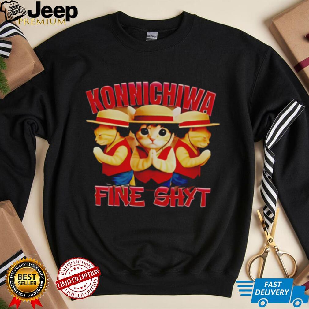 “Konnichiwa Fine Shyt cat shirt.” This isn’t just a piece