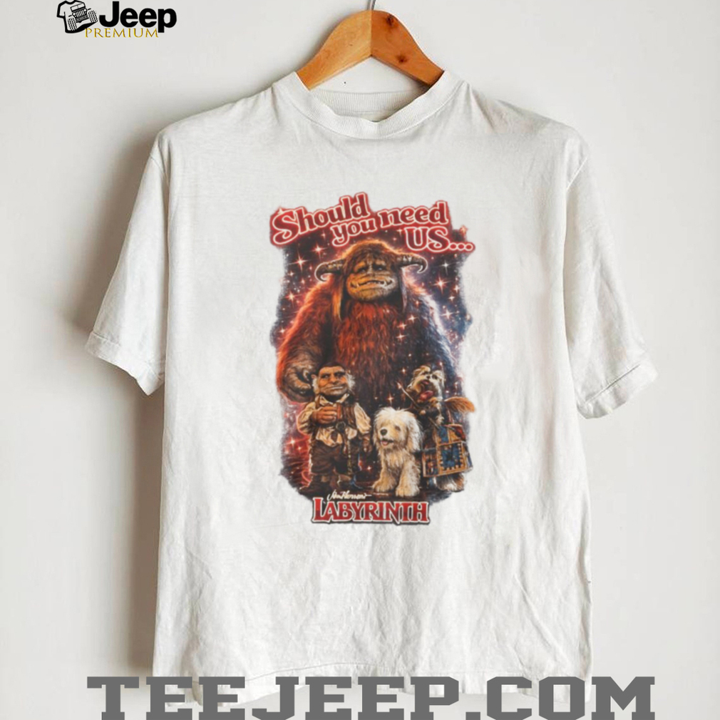 For fans of Jim Henson’s iconic 1986 fantasy film, this vintage-style tee features beloved Labyrinth characters with the timeless quote ‘Should You Need Us.’ A nostalgic treasure for lovers of magic, goblins, and David Bowie.