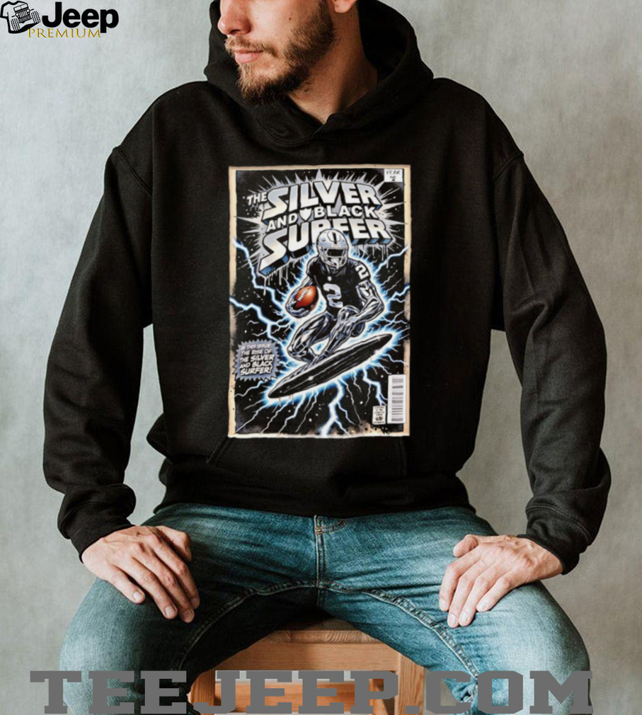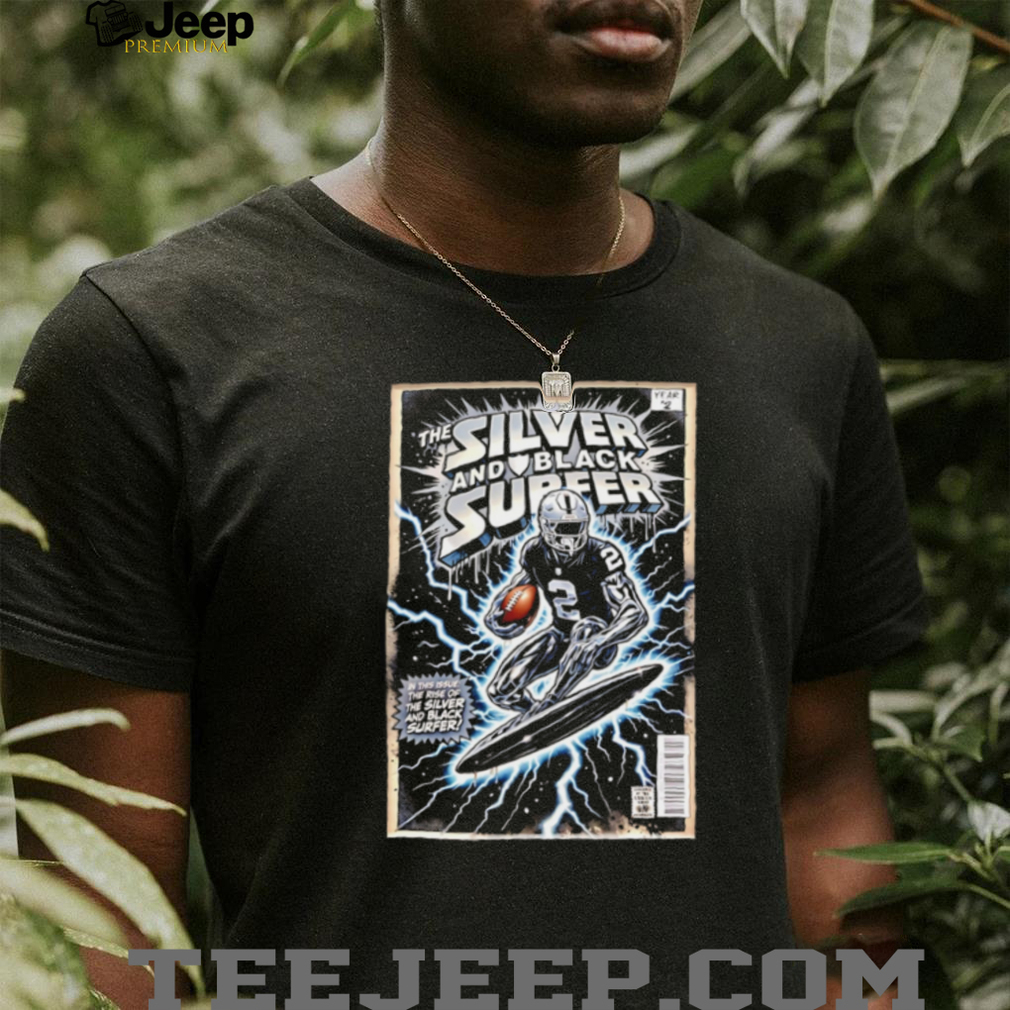 (Las Vegas Raiders “The Silver and Black Surfer” Davante Adams Comic Book Cover T Shirt)👕 About Las Vegas Raiders “The Silver and Black Surfer” Davante Adams Comic Book Cover T Shirt