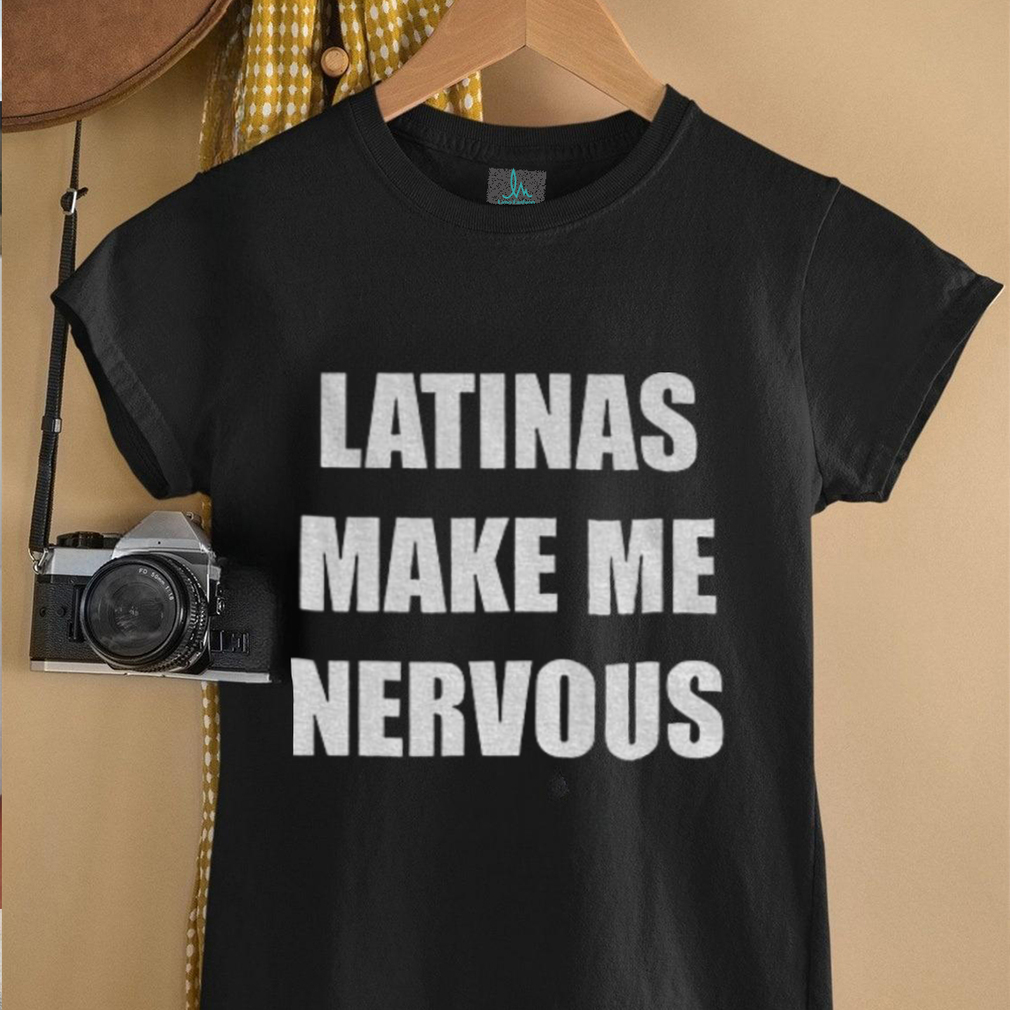 The “Latinas make me nervous shirt” is a piece of apparel that expresses a personal feeling or reaction specifically towards Latina women. The statement is subjective and could stem from a variety of individual experiences, perceptions, or perhaps even stereotypes. Without further context, the exact reason for this feeling of nervousness is unclear and open to interpretation. The shirt makes a direct and potentially provocative statement about the wearer’s personal experience or feelings in relation to a specific group of people.
