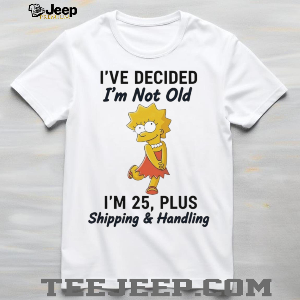 (Lisa Simpson I’ve Decided I’m Not Old I’m 25 Plus Shipping and Handling T Shirt)The Ultimate Everyday Essential Elevate your wardrobe with the signature Teejeep touch. Our premium t-shirts are crafted for those who demand the perfect balance of rugged durability and cloud-like softness. Whether you’re hitting the streets or relaxing at home, this is the tee you’ll reach for every time.