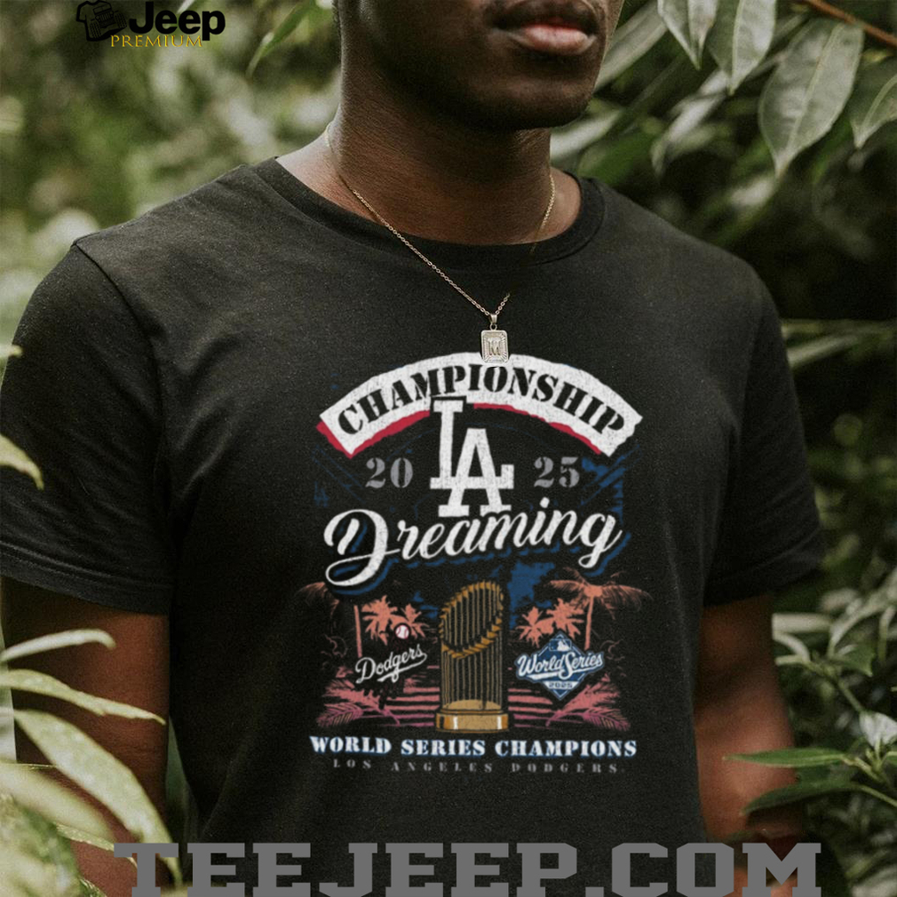 Support a greener planet with your purchase! For every Los Angeles Dodgers 2025 World Series Champions Dreaming Franklin T Shirt sold, a portion goes towards planting new trees, making you a part of a positive environmental change. To keep your tee looking its best, machine wash cold with like colors and tumble dry low. Do not bleach or iron directly on the design. This simple care will ensure your Dodgers fan shirt lasts for many seasons to come.