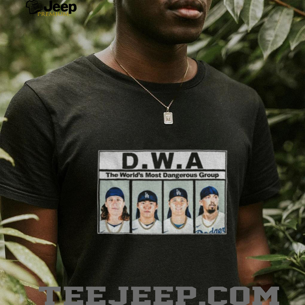 Rep the Dodgers with an edge in this “DWA – The World’s Most Dangerous Group” tee! Imagine the energy of a packed Dodger Stadium blended with the raw power of 90s hip-hop. If you’re a Dodgers die-hard who appreciates a bit of attitude, this shirt is your walk-up music.