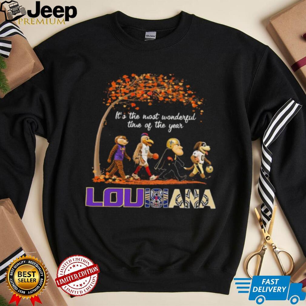 Searching for that perfect gift for the ultimate Louisiana sports fanatic in your life? This “Mascot Abbey Road It’s The Most Wonderful Time Of The Year” shirt is a guaranteed touchdown. It’s a thoughtful, engaging, and uniquely Louisiana-centric present that speaks directly to their passion for their beloved teams and their vibrant state. Whether it’s for a birthday, the festive holiday season (truly “the most wonderful time of the year” for gifting!), or just a meaningful gesture to acknowledge their unwavering loyalty, this shirt is bound to be a cherished item. It transcends typical fan gear, offering a creative and unifying artistic take on their devotion. This isn’t just fabric and ink; it’s an experience, a conversation starter at any tailgate, game watch party, or casual gathering. It embodies the essence of Louisiana sports culture in a single, stylish, and deeply personal garment. Personal testimonials from recipients of similar multi-team mascot apparel highlight the joy and appreciation they feel for such a unique and inclusive tribute to their state’s sports scene. It truly makes a powerful statement about what it means to be a Louisiana sports fan, through and through, representing the resilience and passion of the Bayou State.