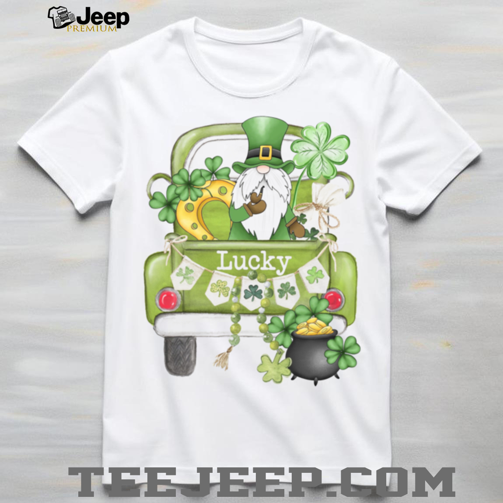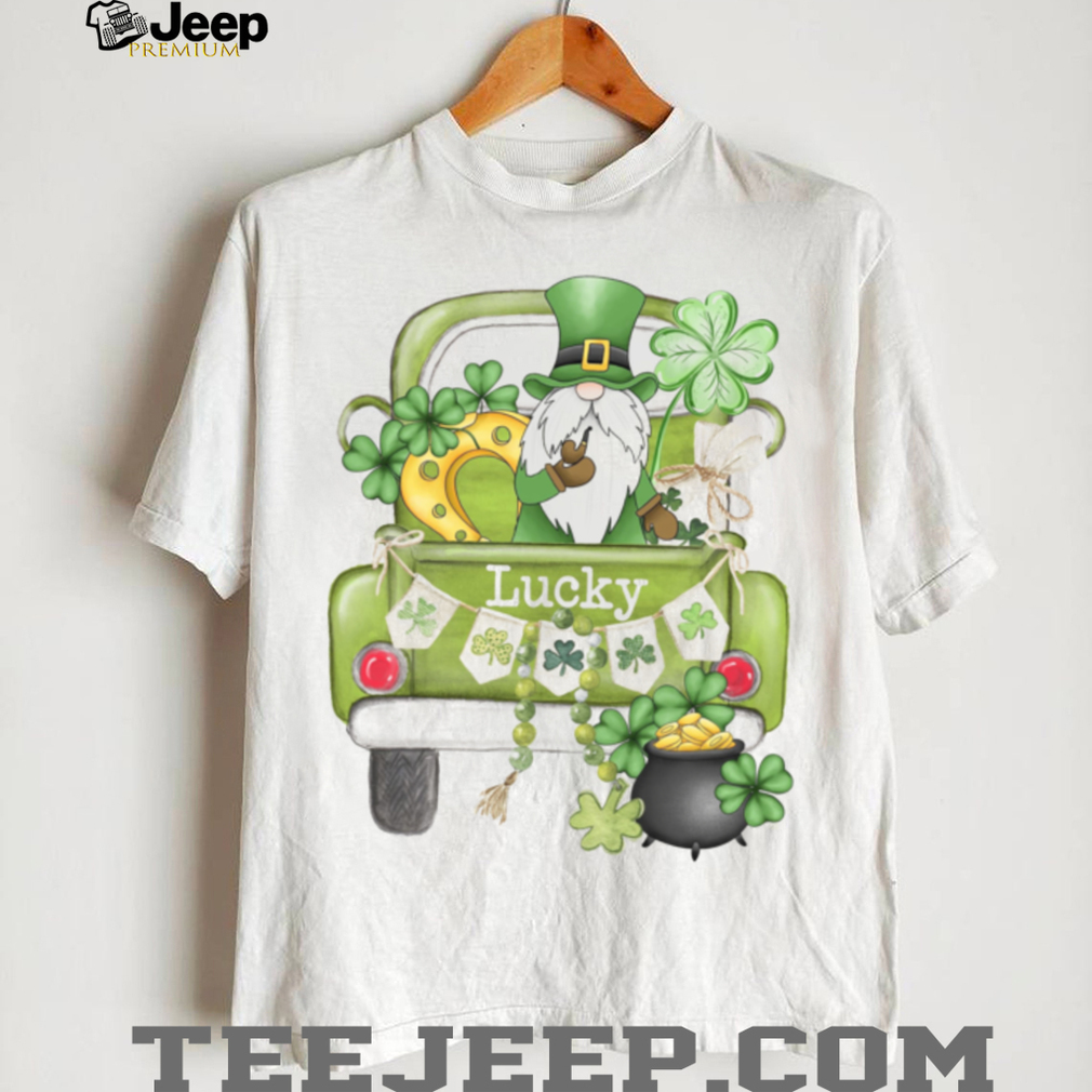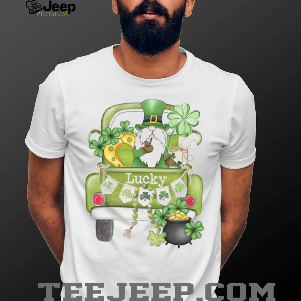 👕 About Lucky Garden Gnome in Green Pickup Truck St. Patrick's Day Graphic Tee