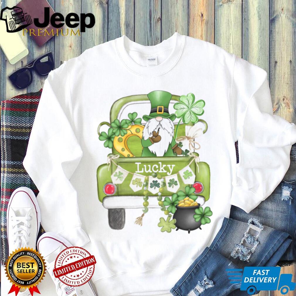Lucky Garden Gnome in Green Pickup Truck St. Patrick’s Day Graphic Tee, Treat yourself or make a great gift for your loved ones
