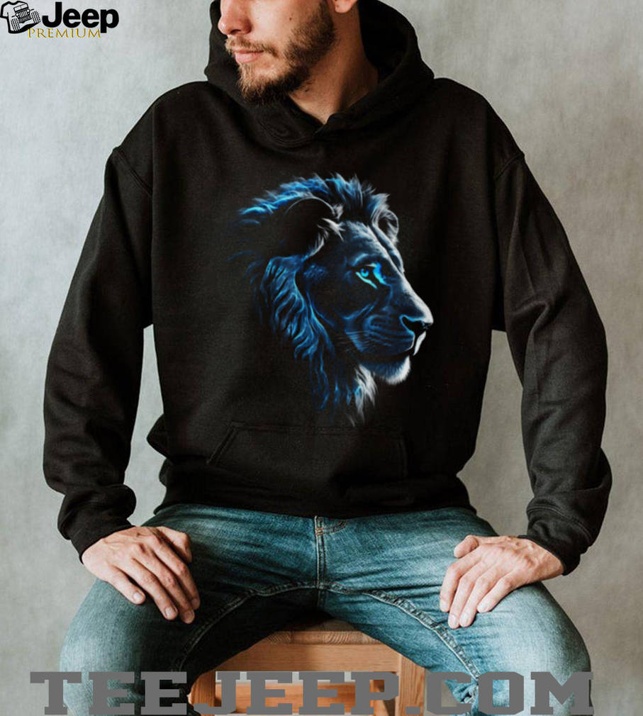 (Majestic Blue Fire Lion Graphic Art Black T Shirt)Majestic Blue Fire Lion Graphic Art Black T Shirt, Treat yourself or make a great gift for your loved ones