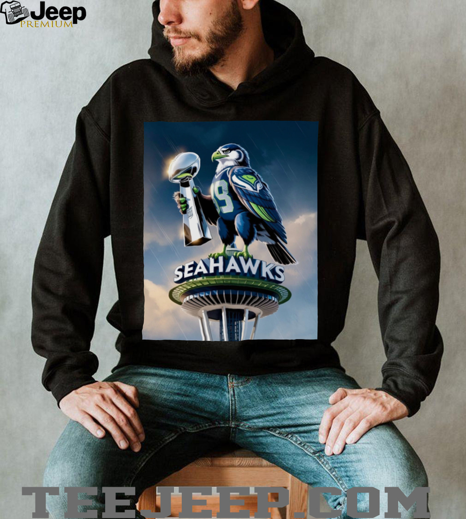 👕 About Majestic Hawk on Space Needle with Trophy Seattle Football Tee