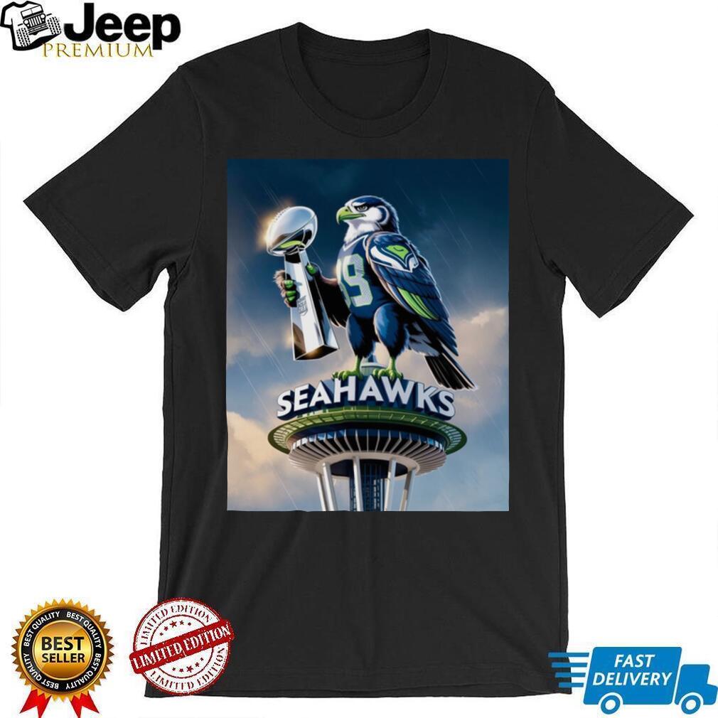 Majestic Hawk on Space Needle with Trophy Seattle Football Tee, Treat yourself or make a great gift for your loved ones