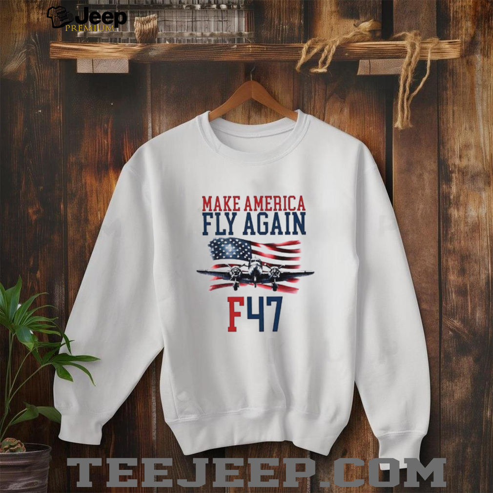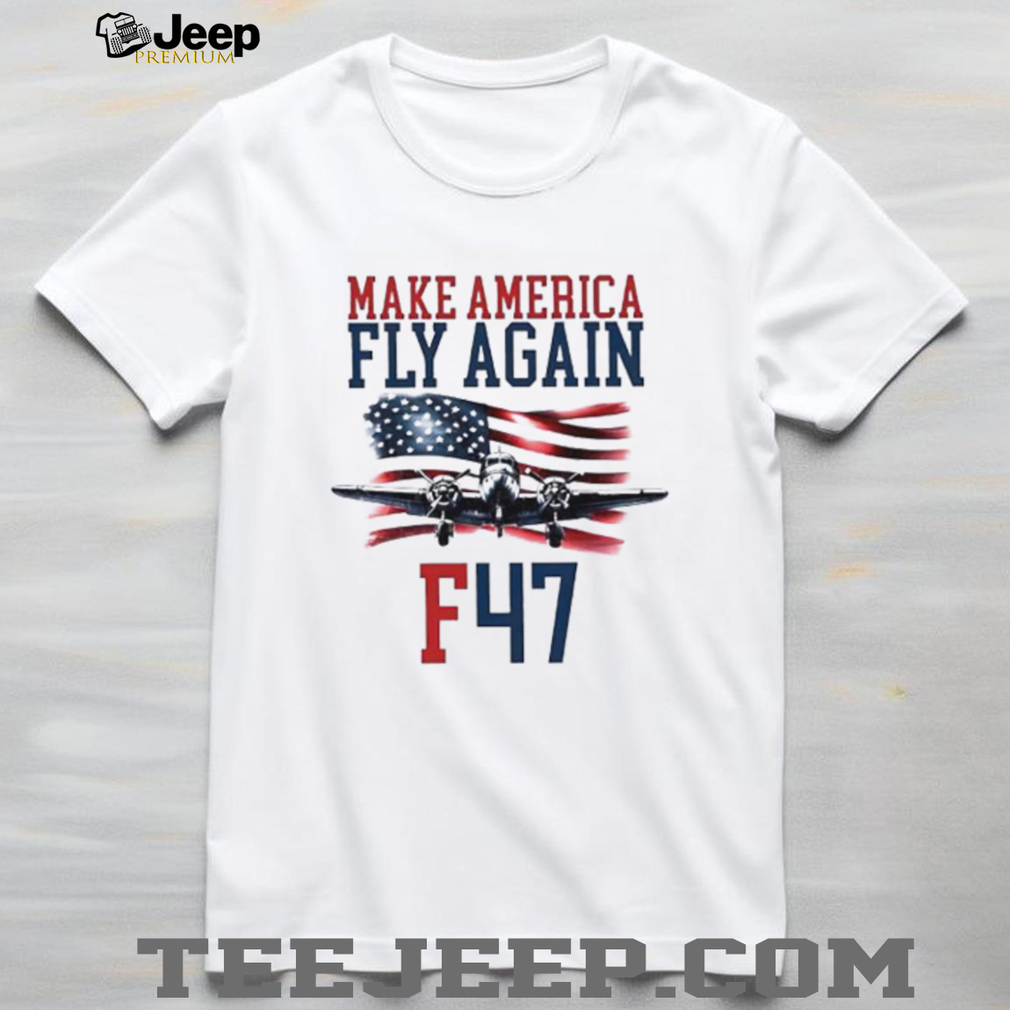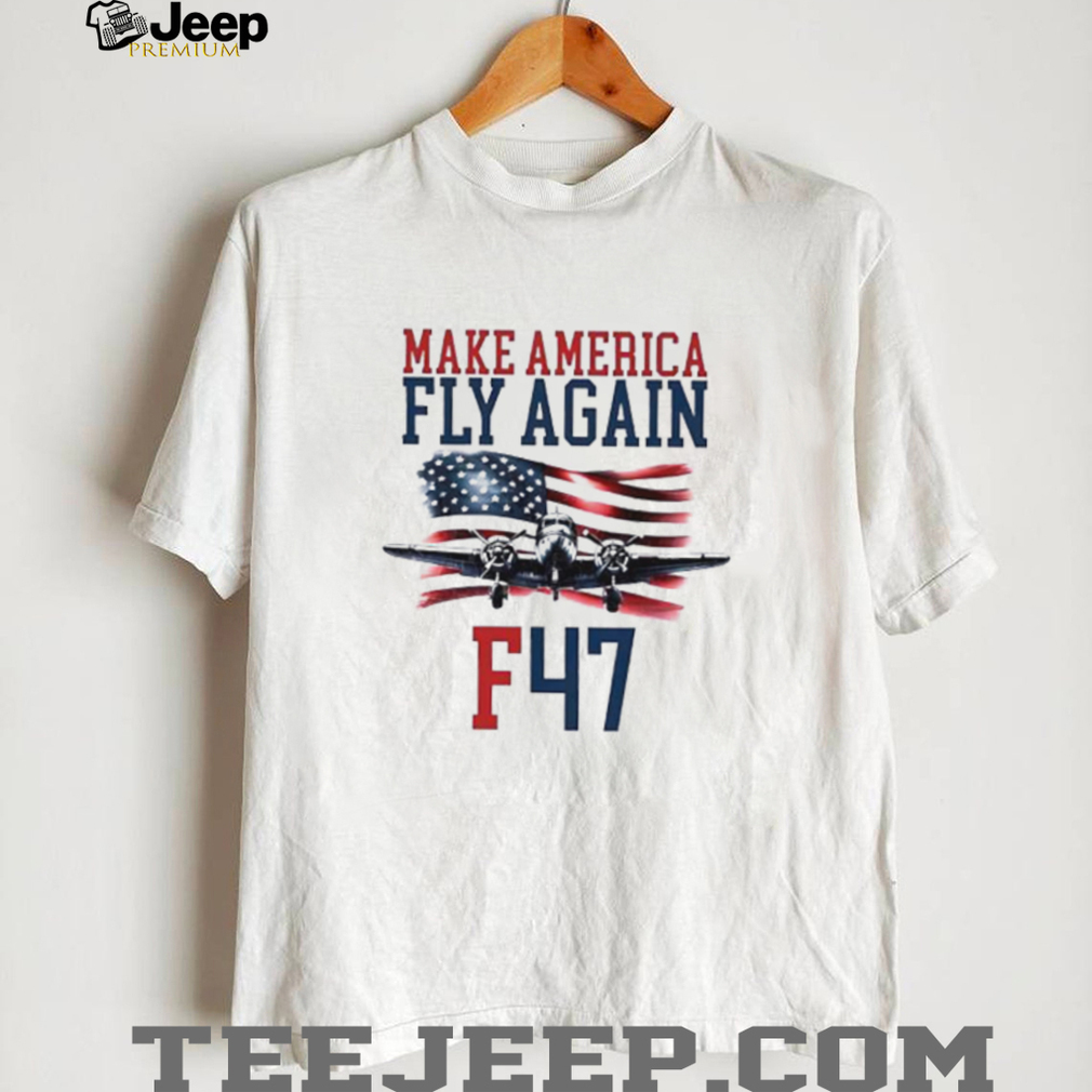 This shirt goes beyond simple political apparel, embodying a sense of national pride and celebrating the power and technology of military aviation. It signifies the wearer’s support for a strong American military and their appreciation for the F-47 fighter jet (whether real or imagined). The design could incorporate elements that visually represent these qualities, such as patriotic symbols, military aircraft graphics, or a design that highlights the power and speed of the fighter jet. It’s a conversation starter, prompting discussions about military history, aviation technology, and the political implications of the slogan. Wearing this shirt signifies a personal connection to the celebration of American military strength and the enjoyment of aviation-themed designs.