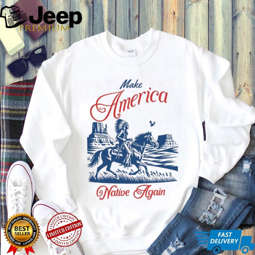 (Make America Native Again Warrior on Horseback Heritage Tee)With the 2026 Winter Olympics officially beginning later this week, the final rosters have confirmed that Team USA and Team Canada will be the primary heavyweights. Team USA: The “Tkachuk-Eichel-Tkachuk” line is expected to lead the charge, supported by a second line of Matt Boldy, Auston Matthews, and Jake Guentzel. In goal, Connor Hellebuyck is the confirmed starter for the opener. Team Canada: Head coach Jon Cooper is leaning into chemistry, pairing Sidney Crosby and Nathan MacKinnon on the second line, while Connor McDavid centers the top unit. The NHL’s return to the Games has transformed the season into Make America Native Again Warrior on Horseback Heritage Tee, with the league officially pausing from February 6 to February 24.