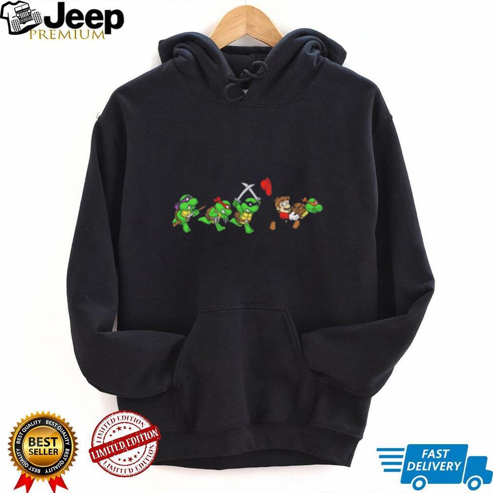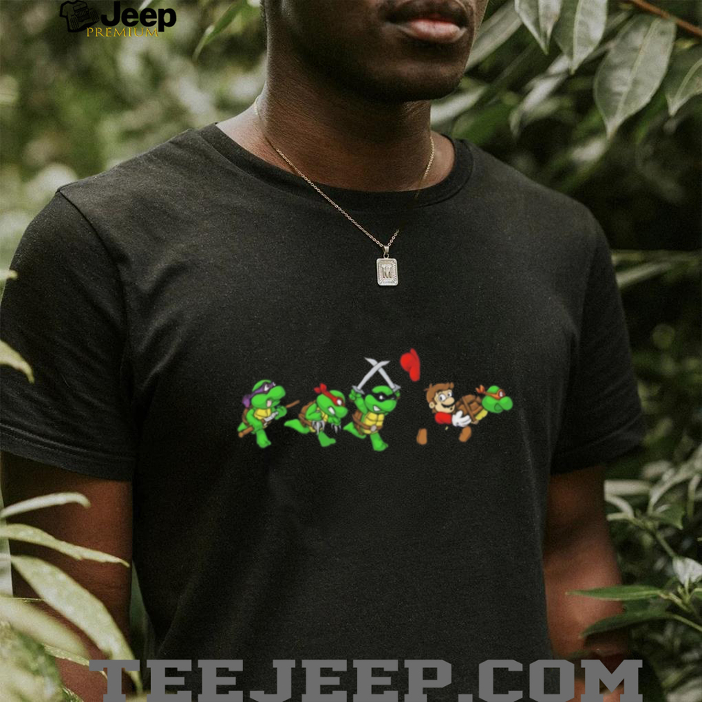👕 About Mario Chasing Ninja Turtles Funny Retro Gaming Mashup T Shirt