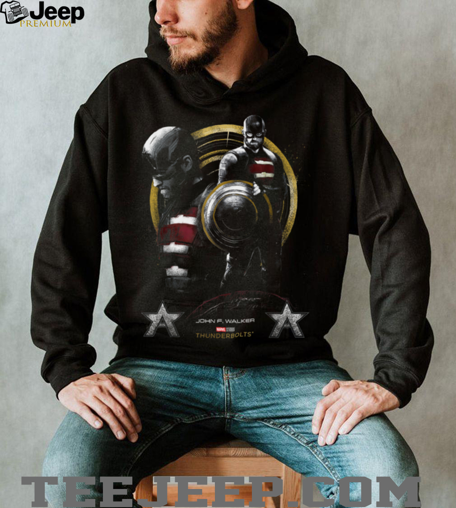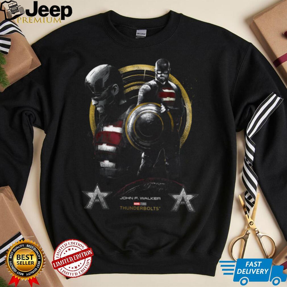 Wearing this t-shirt allows fans to display their interest in the complex and often controversial character of John Walker. Introduced as a replacement for Captain America, Walker’s story has been one of immense pressure, flawed ideals, and a struggle for redemption. His inclusion in the Thunderbolts suggests a further exploration of his character and his attempts to navigate a world where the lines between hero and villain are blurred. By sporting this shirt, fans can show their engagement with Walker’s nuanced narrative and their anticipation for his continued development within the MCU as he potentially seeks to prove himself or find a new purpose among his equally complicated teammates.