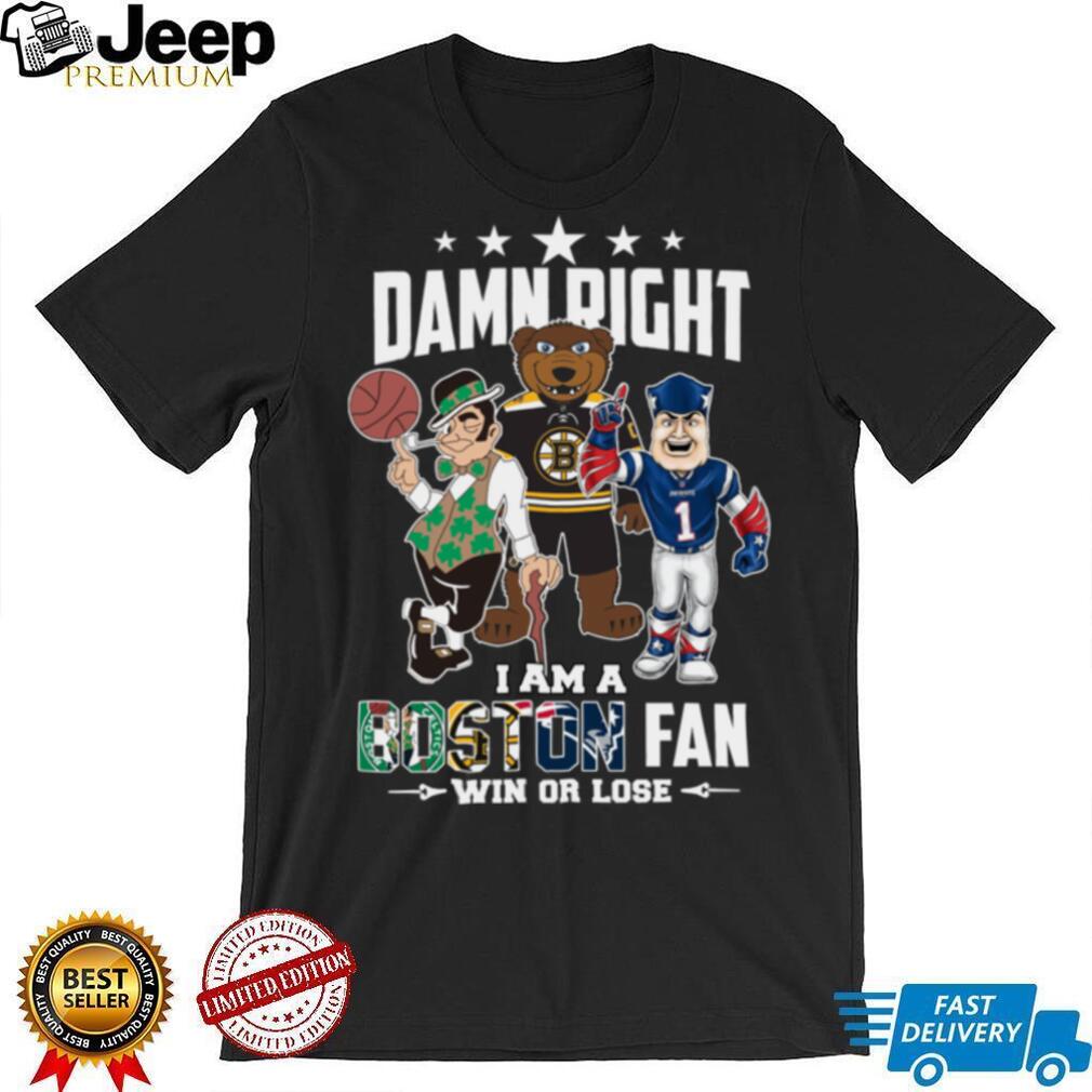 Who Rocks This Best with the Mascot Damn Right I Am A Boston Fan Win Or Lose Tee: