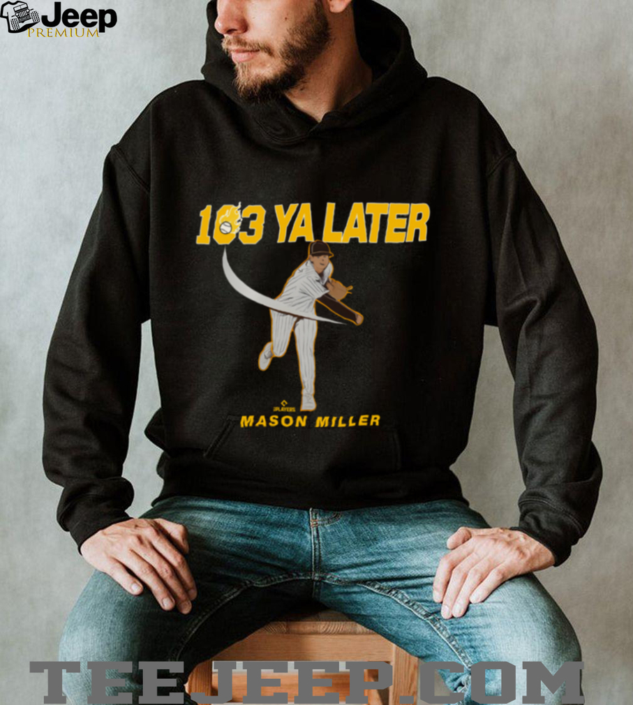 This “Mason Miller Padres 103 Ya Later Baseball Hoodie” combines quality design with all-day comfort. Whether you’re heading to Petco Park, chilling with friends, or running errands, this hoodie seamlessly fits your lifestyle. Made from a warm and soft cotton blend, it provides a comfortable and warm fit. The unique design is bold and stylish. With a wide range of sizes, this hoodie is perfect for all Padres fans. Please use the first images from the product to make the content more vivid.