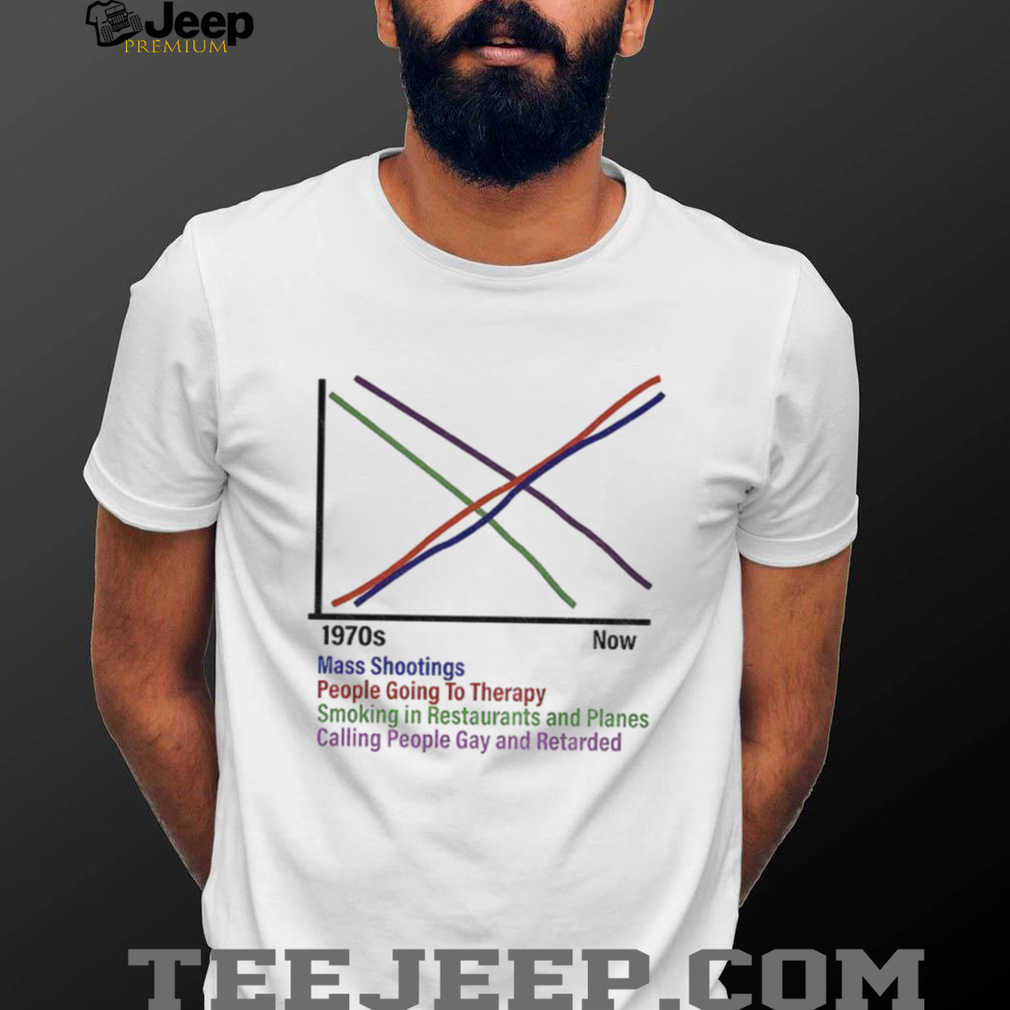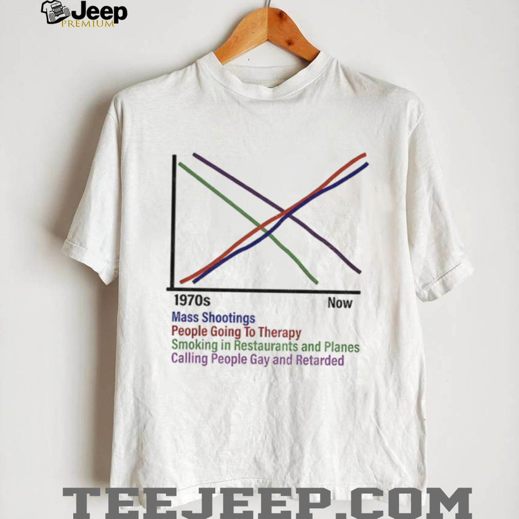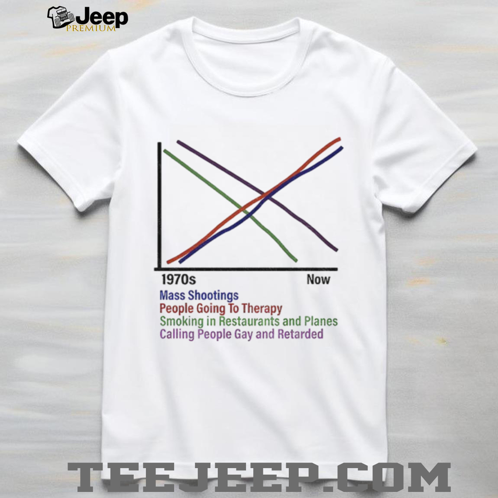 Remember a time when social norms were starkly different? This “Mass shootings people going to therapy smoking in restaurants and planes 1970s now shirt” is a bold, thought-provoking piece that sparks reflection on how society has evolved—or perhaps, in some ways, regressed. It’s a statement tee for those who appreciate dark humor and a keen observation of historical shifts. Perfect for individuals who enjoy engaging in conversations about societal contrasts between the 1970s and today, this shirt is a unique addition to any wardrobe, designed to make people stop and think.