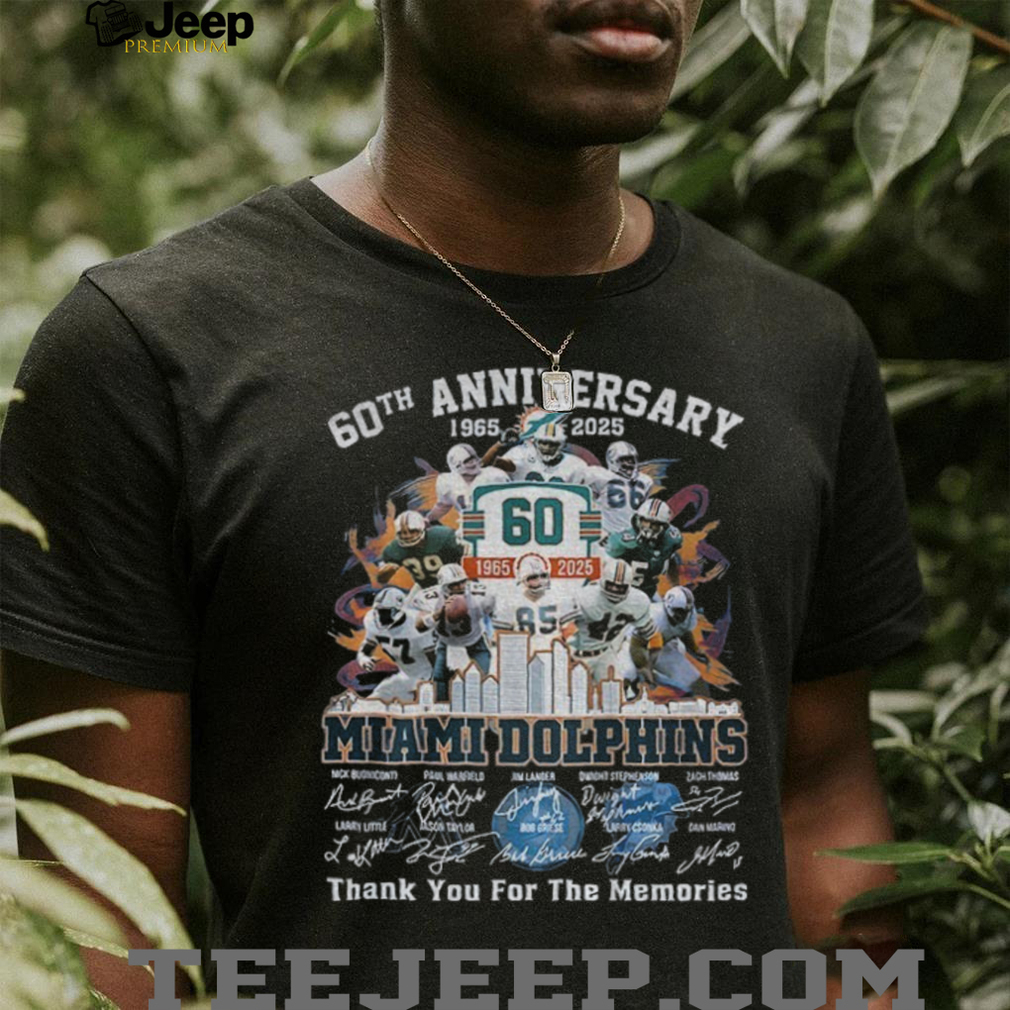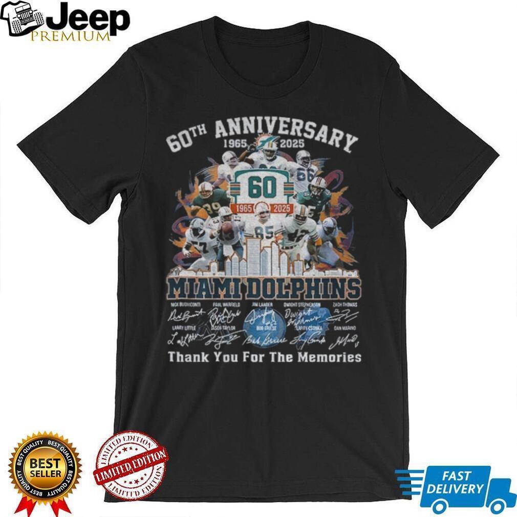 This Miami Dolphins 60th Anniversary shirt features iconic signatures and a “thank you for the memories” message, making it a genuine collector’s item for any dedicated fan. Made from a comfortable cotton blend, it’s perfect for game days, tailgates, or just showing off your team spirit around town. The design celebrates the 1965-2025 era, highlighting the rich history of the team. Available in various sizes, this Dolphins anniversary shirt ensures a great fit for every supporter. Imagine the conversations this shirt will spark!
